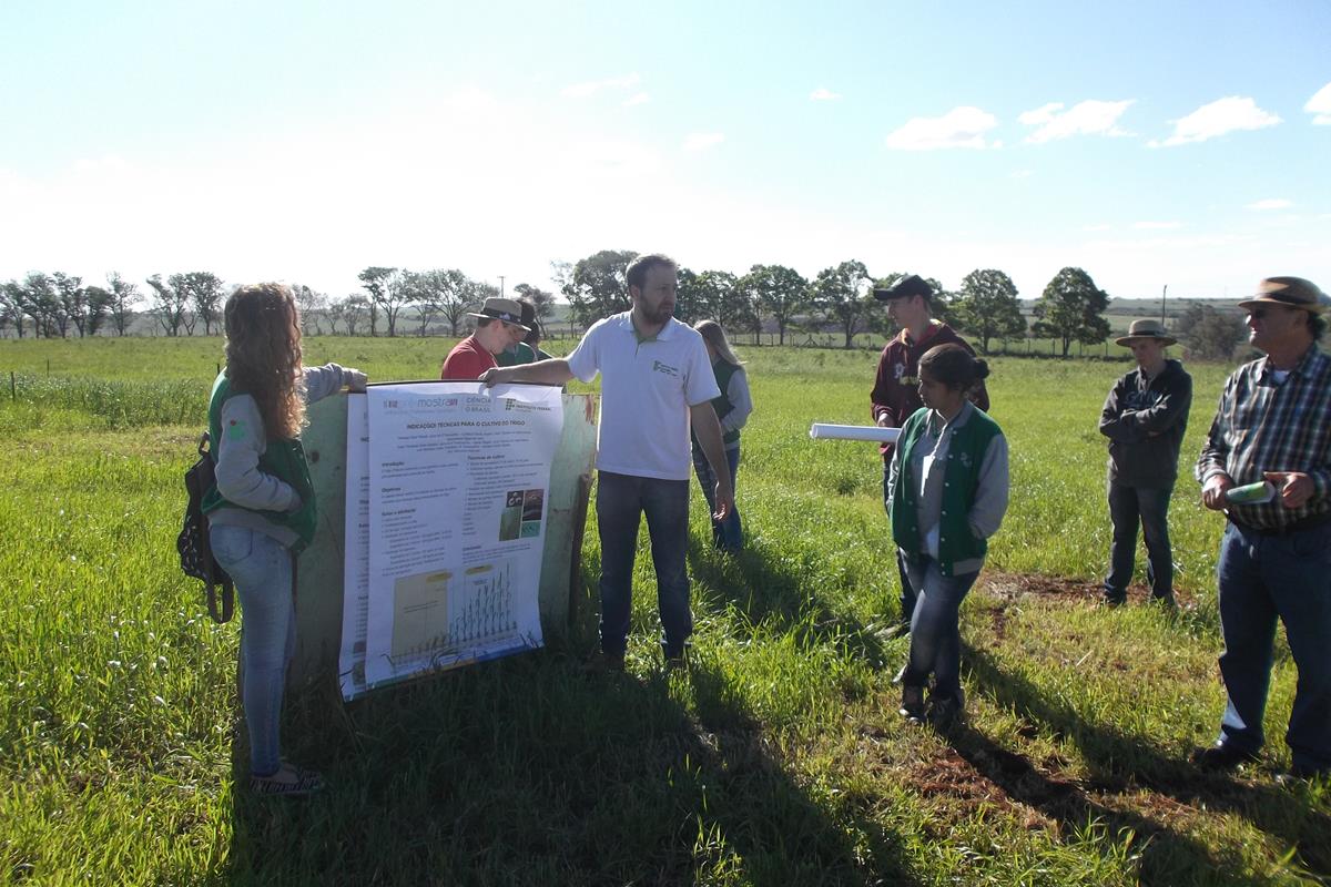O dia de campo contou com a colaboração de empresas locais que contribuíram com insumos, implementos agrícolas e assistência técnica. Organizou-se 6 estações de visitação: que destacaram a importância de um manejo adequado do solo e das pastagens, a implantação de rotação de culturas e palhada no solo (Desenvolvido pela ASCAR/EMATER), apresentação de dados sobre utilizando de biofertilizante e urina de vaca em forragerias como forma de potencializar a produção de massa verde e seca em azevem HQ e Potro, aveia Branca e Preta, centeio, trigo tarumã e alguns consórcios com ervilhaca (Parceria com AGRÍCOLA FELDEN, SEMENTES LOPES E CURSO DE AGRONOMIA DA URI), aplicação de diferentes doses de ureia e manejo de doenças com fungicida e diferentes indutores de resistência no trigo (PARCERIA AGROFEL E AGROFUTURA), e aplicação de diferentes doses de ureia e enxofre na canola (PARCERIA AGROFUTURA, AGROFEL E AGRÍCOLA FELDEN), também foi parte atuante deste evento a empresa REDEMAQ.