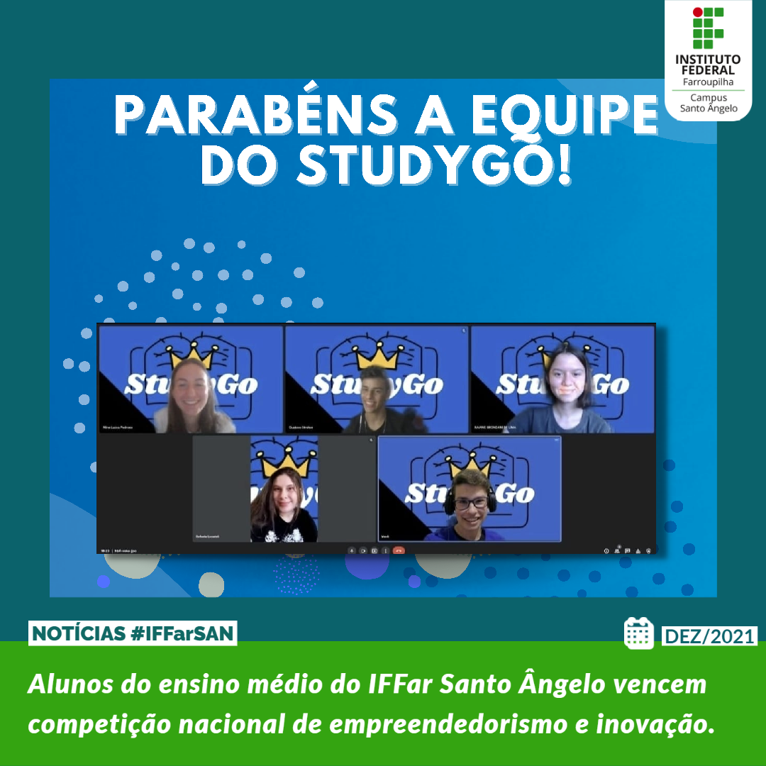 Os alunos Aline Lucca Pedroso, Gustavo de Almeida Ströher, José Frederico Araújo Lucca, Rafaela Rocha Locateli e Raiane Brondani de Lima são segundo ano do curso de Manutenção e Suporte em Informática e criaram a startup StudyGO (@studygo_app), para ajudar os jovens a achar sua área de atuação.