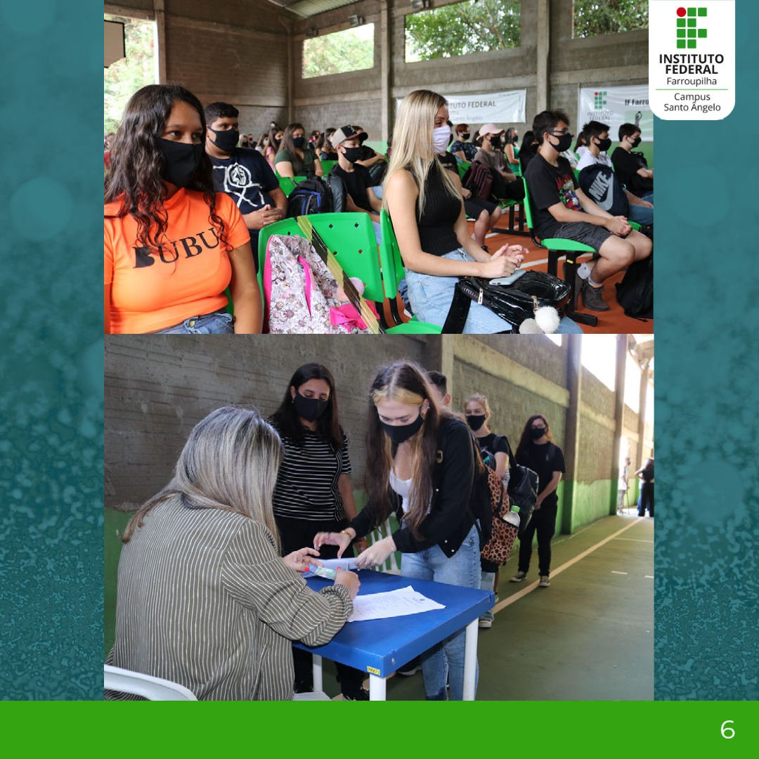 O (re)encontro de acolhimento presencial foi marcado por muita alegria, entusiasmo e emoção. Organizado de forma escalonada visando seguir os protocolos do Plano de Contingência para a Prevenção, Monitoramento e Controle do Covid-19 no âmbito do IFFar. Inicialmente, pela parte da manhã, foram recepcionadas as turmas de formandos dos cursos técnicos integrados ao ensino médio. No turno da noite, foram acolhidas as turmas dos cursos do eixo tecnológico saúde e ambiente.