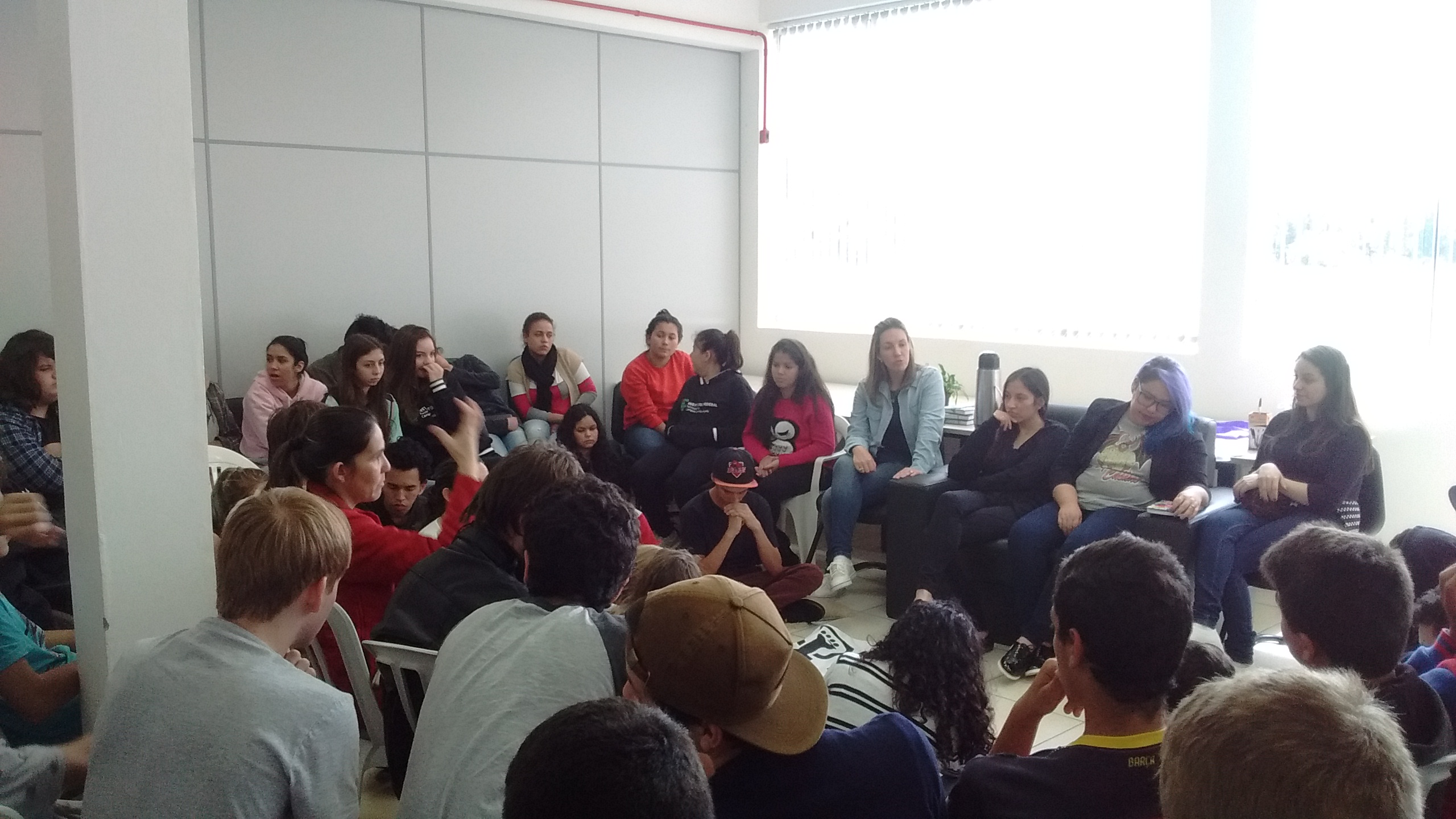 O trabalho foi desenvolvido pelo Núcleo de Gênero e Diversidade Sexual e CAI com os alunos do integrado, com o intuito de transpor preconceitos e acolher a diferença. A atividade teve como objetivo geral fomentar e propiciar reflexões sobre os paradigmas vigentes referente ao feminino viabilizando a construção de novos conceitos sobre a diferença para uma educação pluricultural rompendo barreiras educacionais e atitudinais na instituição, de forma a promover inclusão de todos na educação. O bate-papo aconteceu no dia 06 de outubro, na sala de convivência do campus, sendo as mediadoras a acadêmica de Direito Tainah Motta, acadêmicas de psicologia Paula Steinhaus e Daiana Birmann, e Professora Marcele Ravasio.