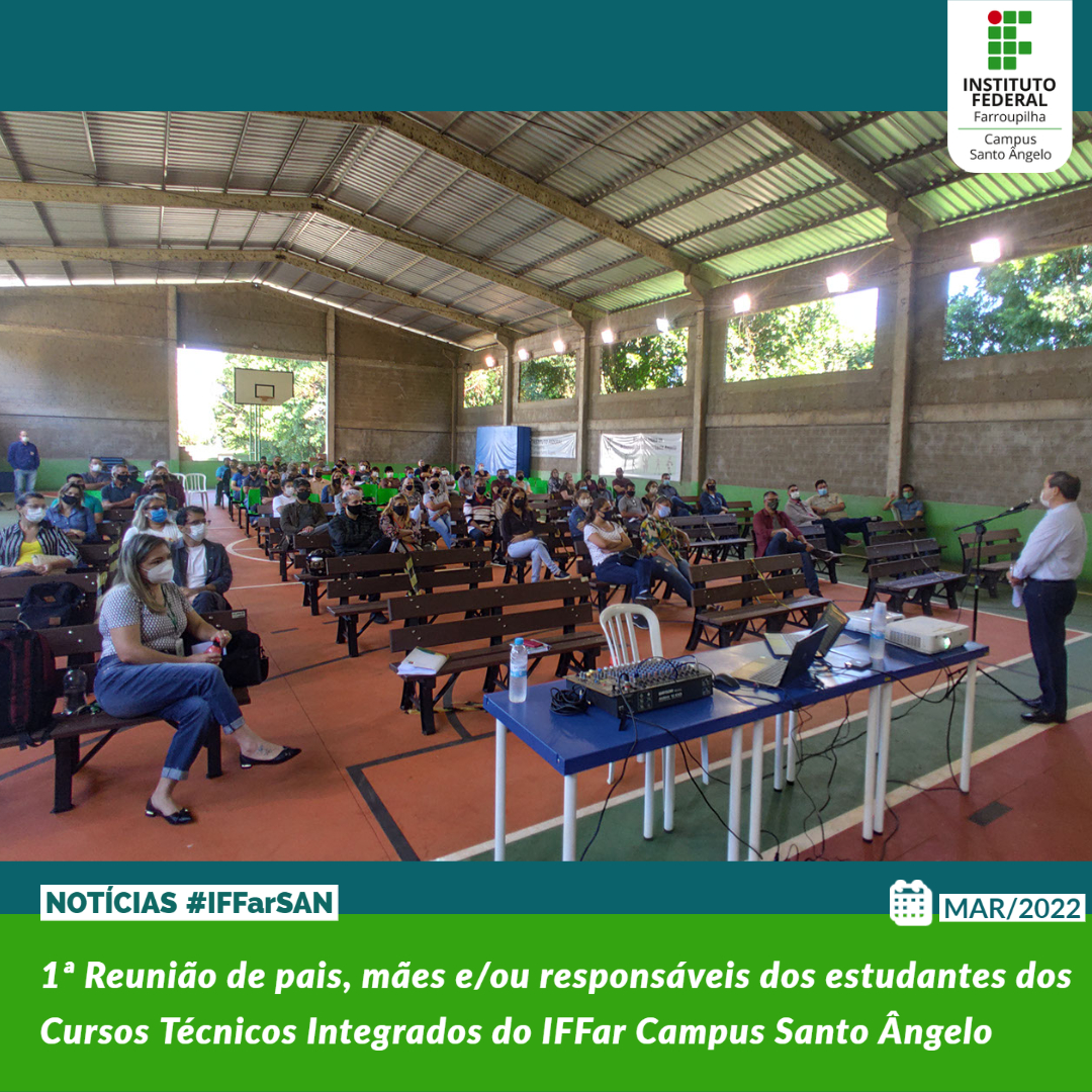 No último sábado dia 12 de março de 2022, realizamos a 1ª reunião de pais, mães e/ou responsáveis, de estudantes dos Cursos Técnicos Integrados do Instituto Federal Farroupilha - Campus Santo Ângelo.