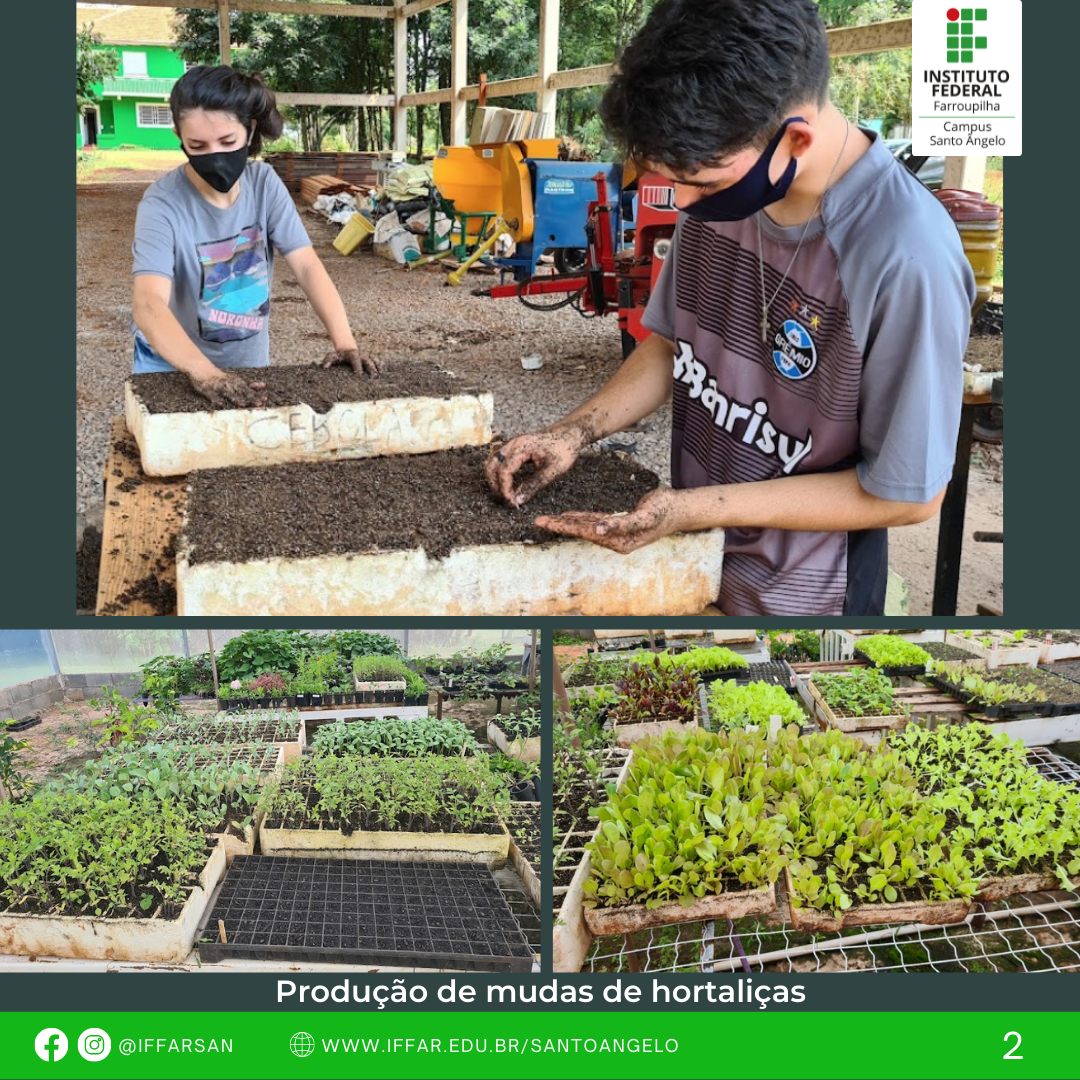 O projeto de extensão “Biodiversidade e Alimentação”, sob a coordenação da professora Dra. Elaine Luiza Biacchi Vione, foi desenvolvido em 2021/2022 com o objetivo de produzir mudas e hortaliças de forma agroecológica. Toda a produção se destinou a entidades e famílias em situação de vulnerabilidade social, para a implantação de hortas familiares, individuais e/ou coletivas. O projeto teve por objetivo, também, a utilização dos espaços institucionais do IFFar para produção de hortaliças no laboratório de Ensino, Pesquisa, Extensão e Produção (LEPEP) - Olericultura, com doação das colheitas/produtos a entidades socioassistenciais, para complementar a alimentação das famílias.
