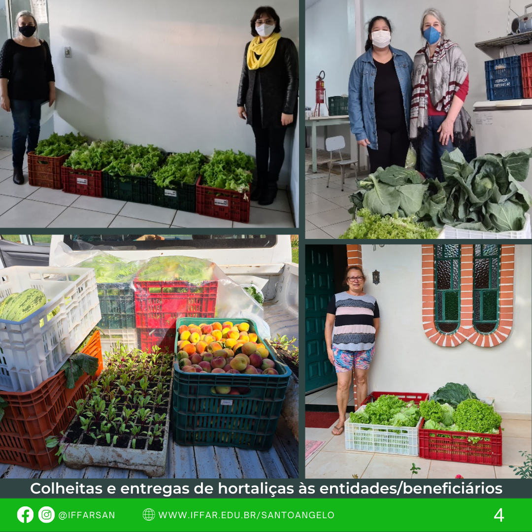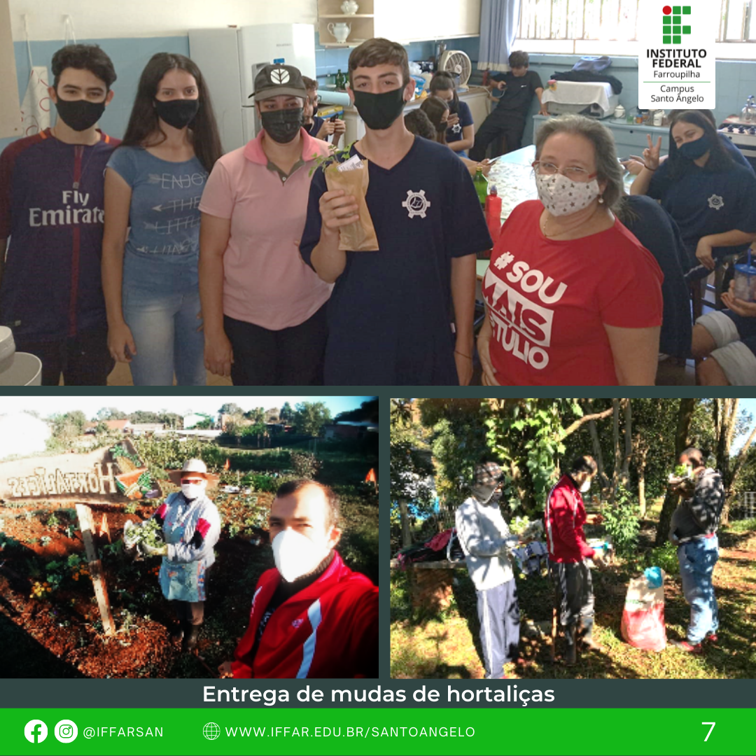 O projeto contou com auxílio de servidores técnicos do IFFar e dois bolsistas (estudantes do curso Técnico em Agricultura, Renan Prestes Cauduro e Érika Renner). Foram beneficiários do projeto famílias (peri) urbanas em situação de vulnerabilidade social e povos indígenas, através de doações às entidades socioassistenciais e diretamente aos beneficiados. Essa estratégia visou a atender aos objetivos do desenvolvimento sustentável (1) erradicação da pobreza; (2) fome zero; (3) boa saúde e bem-estar; (10) redução das desigualdades; e (12) consumo e produção responsáveis, assim mitigando as dificuldades alimentares encontradas pela população de Santo Ângelo.