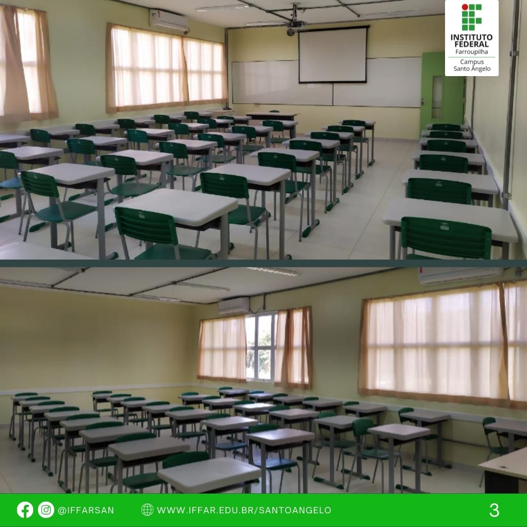 A execução e entrega desse projeto para a comunidade acadêmica vem qualificar ainda mais os espaços pedagógicos do Campus Santo Ângelo, cujo prédio conta com amplo hall de entrada e 6 (seis) salas de aula, estas equipadas com internet, mobiliários, climatizadores de ar, kit de multimídia (projetor, tela), cortinas, lixeiras, além de sanitário com acessibilidade.