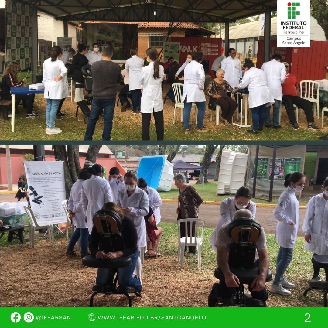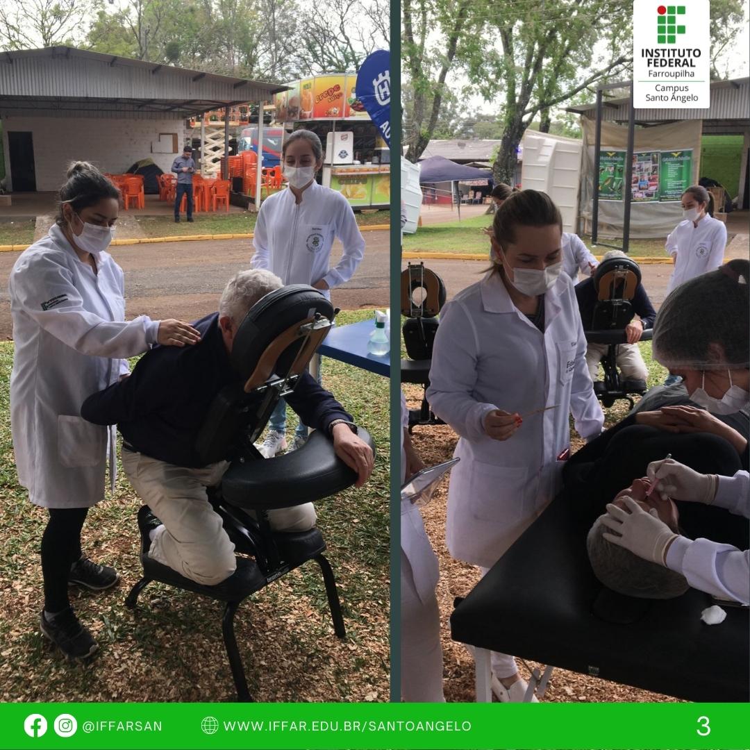 A comunidade teve acesso às atividades como: verificação de pressão arterial e HGT; quick massagem e design de sobrancelhas. Em parceria com a EMATER foram distribuídas mudas através do Projeto Kurumi e Capim Capiaçu IFFar / EMATER.