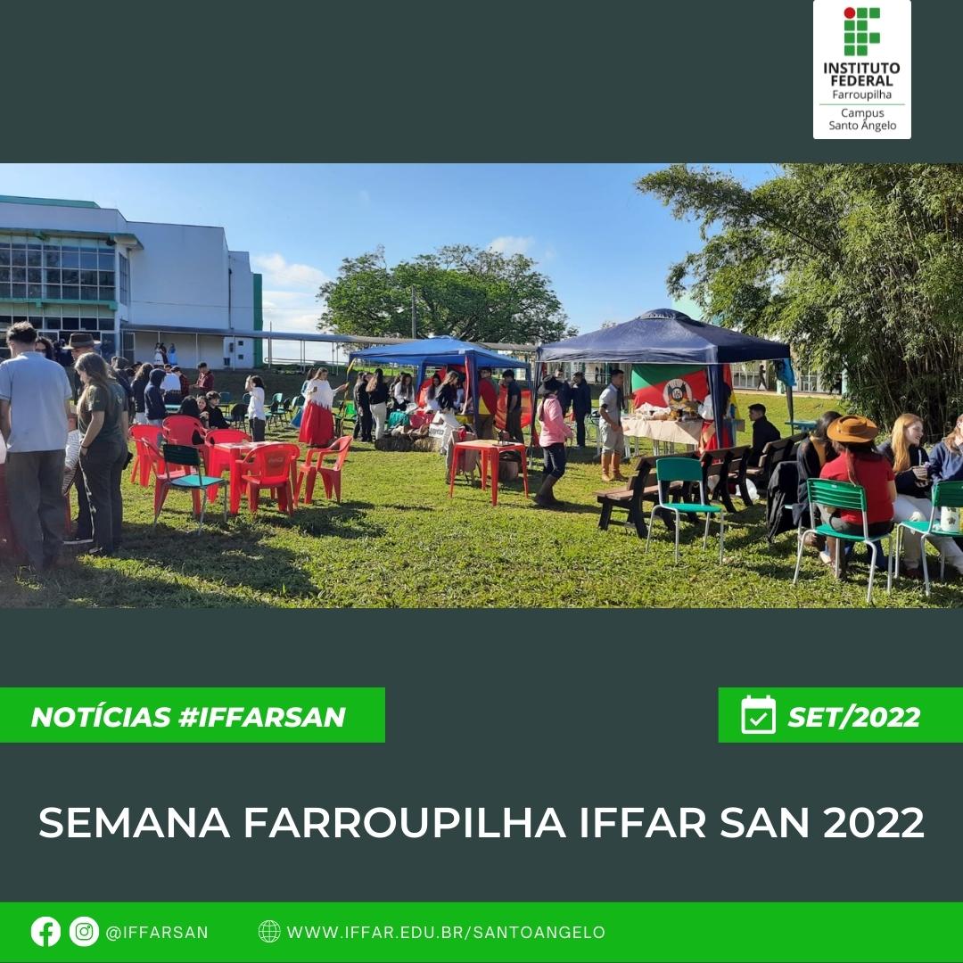 O Instituto Federal Farroupilha Campus Santo Ângelo realizou na manhã do dia 14/09/22 atividades alusivas a Semana Farroupilha do IFFar SAN para alunos e servidores. A mesma foi organizada em conjunto com os Coordenadores dos Cursos Técnicos Integrados, Núcleo de Arte e Cultura-NAC, Direção e Coordenação Geral do Ensino, Setor de Assessoria Pedagógica, Coordenação da Assistência Estudantil e Coordenação de Ações Afirmativas através do NUGEDIS.