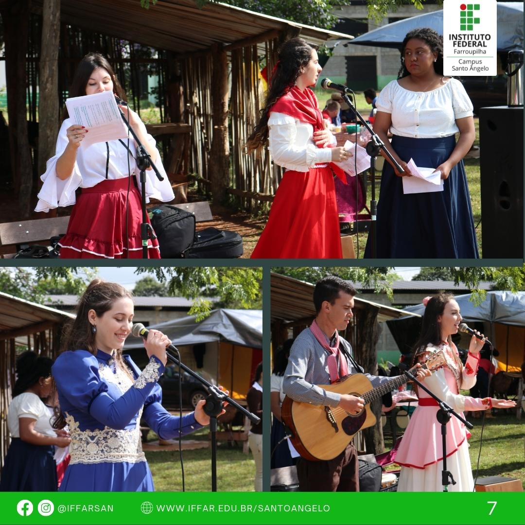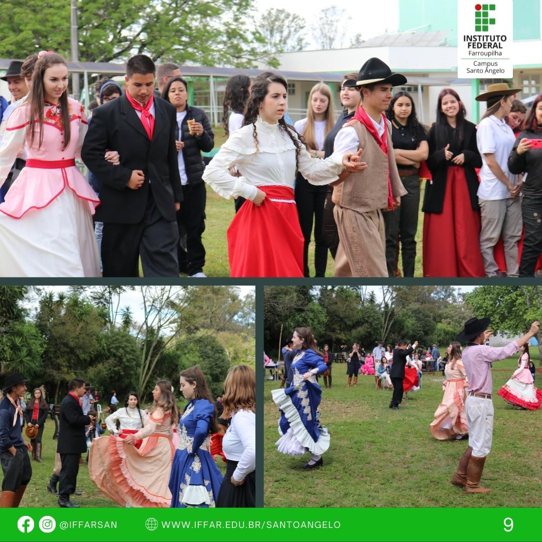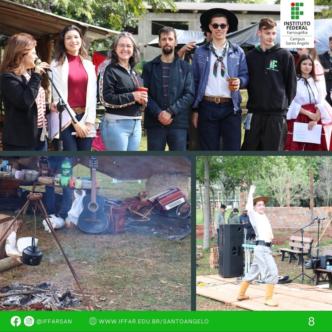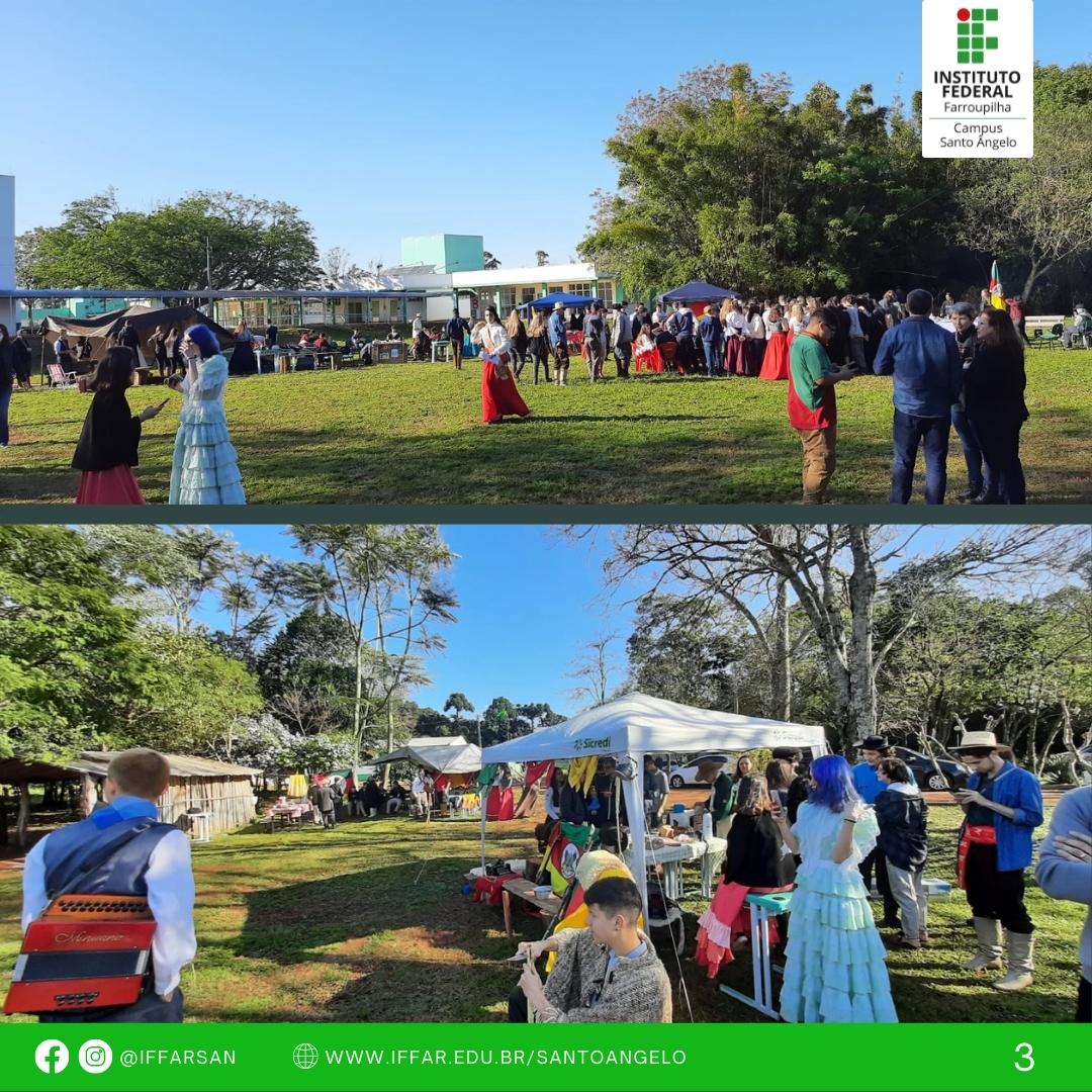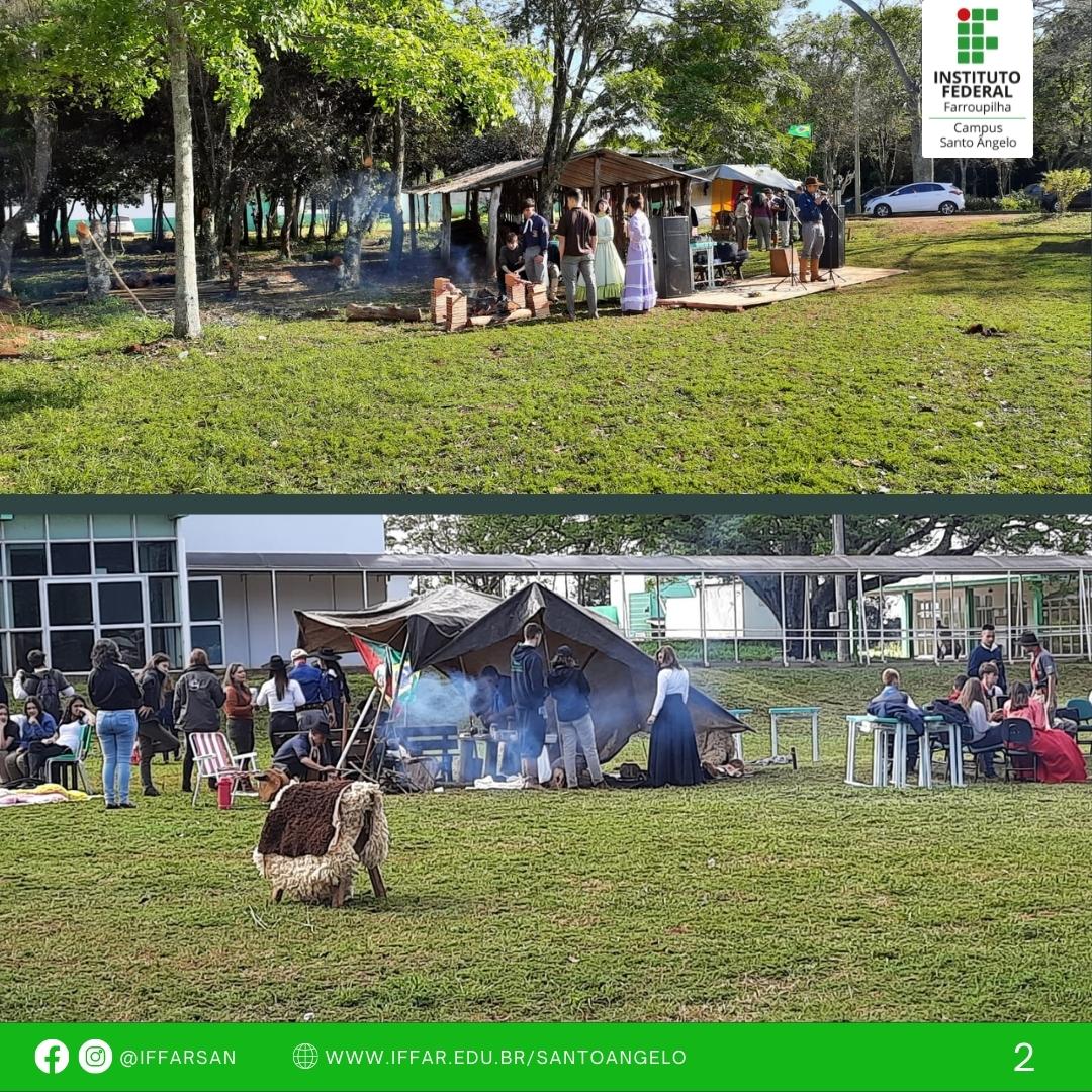 A atividade ocorreu no gramado do Campus Santo Ângelo onde os alunos organizaram por turma, o seu acampamento farroupilha, assim como o café campeiro. Houve torneio de truco e vaca parada, assim como mateada. Após a abertura oficial pelo Diretor Geral o NUGEDIS realizou uma fala alusiva ao dia 16/09 dia para promoção de ações de combate à violência contra as mulheres, data que desde 2020 foi escolhida em memória a servidora Liana Gomes, que foi vítima de feminicídio.