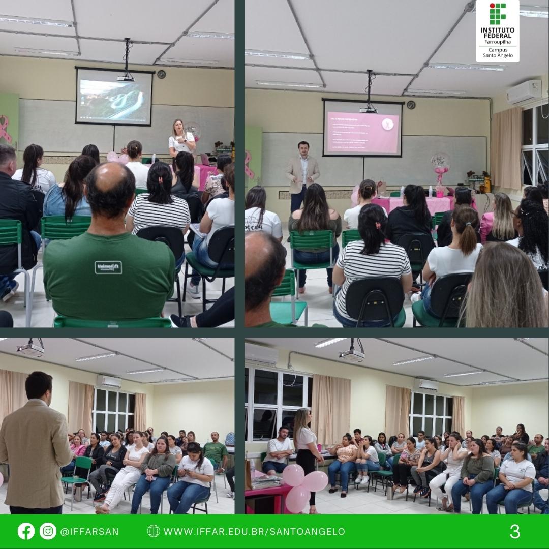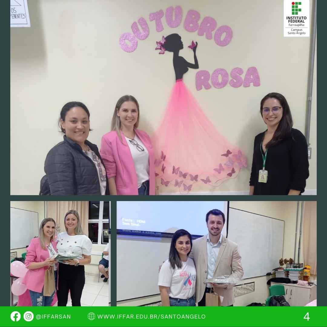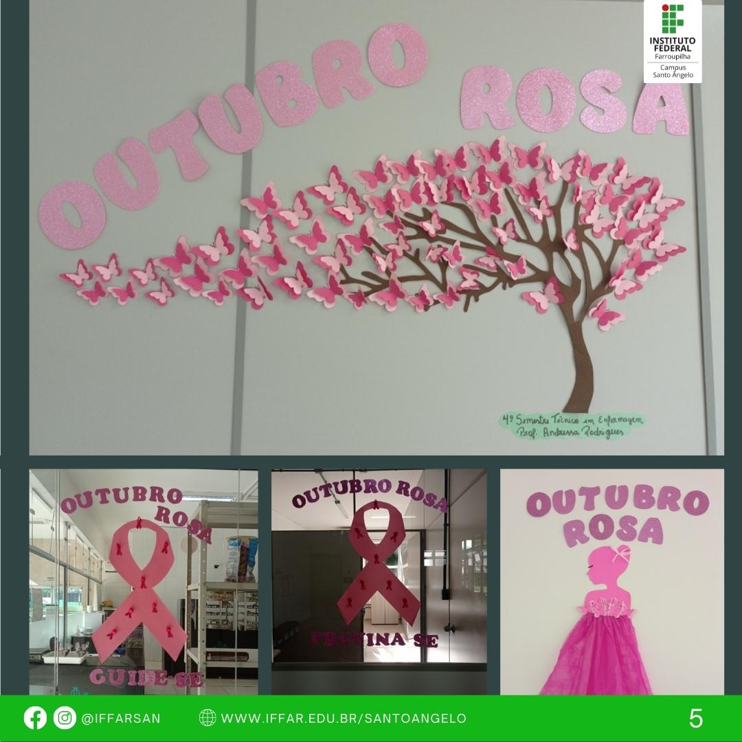 Ao longo do mês, o campus recebeu uma decoração especial e no período noturno foram distribuídos materiais educativos e laço rosa, simbolizando o mês. Além disso, no dia 24 de outubro, os alunos das turmas da Enfermagem participaram de uma palestra com o Médico Mastologista Adriano Imperatori que destacou os dados e as questões relacionadas, principalmente, ao câncer de mama; e com a Técnica em Enfermagem Zisieli Witczak que generosamente compartilhou sua experiência com a doença.
