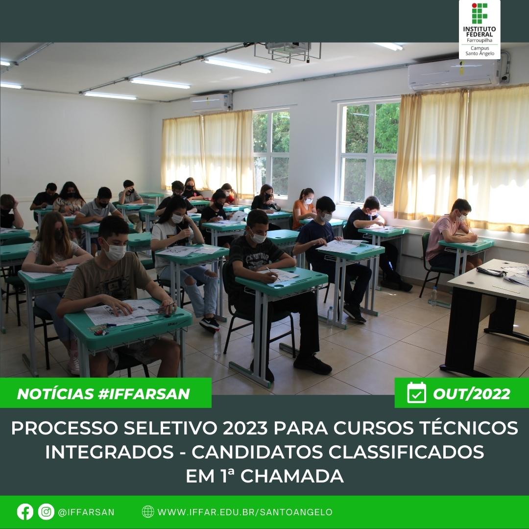 Processo Seletivo 2023 para Cursos Técnicos Integrados - Candidatos classificados em 1ª chamada