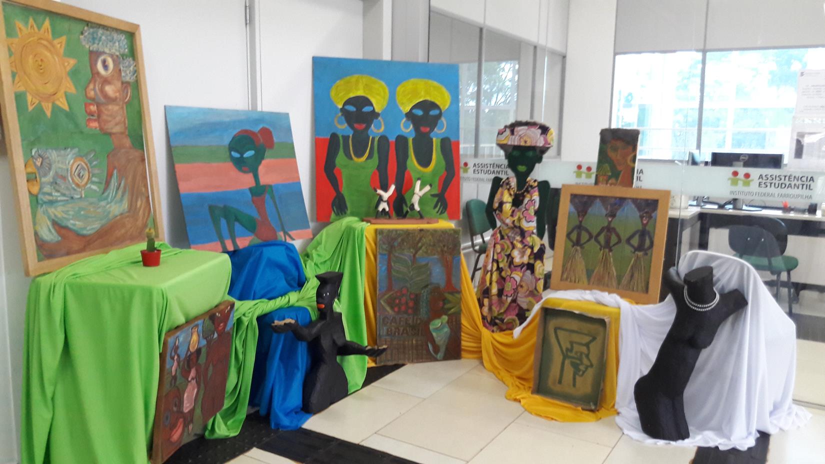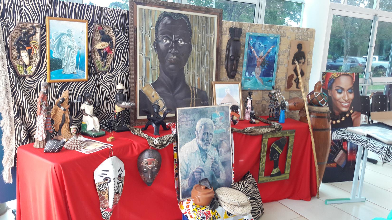 No dia 20 de novembro, celebra-se o Dia Nacional da Consciência Negra. A data rememora o aniversário de morte de Zumbi dos Palmares, um dos maiores símbolos de resistência e luta contra a escravidão. Nesse sentido, o Núcleo de Estudos Afro-brasileiros e Indígenas organiza, entre outras atividades, duas exposições da cultura afro junto ao prédio pedagógico, que ficarão expostas até o dia 23/11. As obras e objetos expostos no térreo foram cedidas pela Sr. Neusa Carmem Farias. As obras expostas primeiro piso foram cedidas pelo Ado de Souza e Mauro Altino de Souza. A apresentação das exposições é feita pela estudante Juliana da Rosa.
