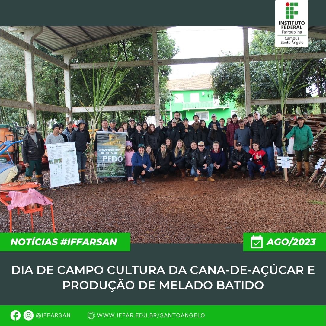 No dia 14/07/2023 realizou-se através do projeto de pesquisa “Avaliação de genótipos de cana-de-açúcar para as condições edafoclimáticas e agroindustriais de Santo Ângelo – RS”, dia de campo sobre a cultura da cana-de-açúcar e produção de melado batido.
