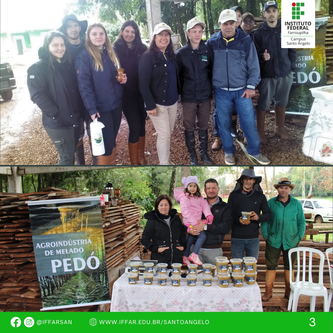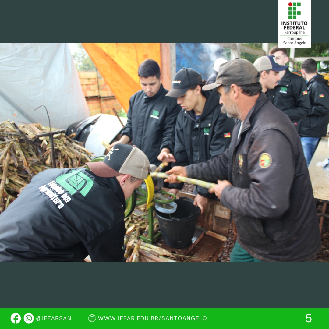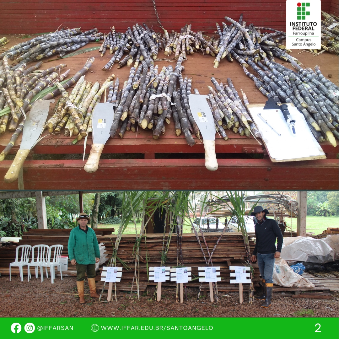 Entre as estações propostas para o evento tivemos a participação da Agroindústria de Melado Pedó & Pedó, do Rincão dos Mendes, de Santo Ângelo, que contou um pouco da sua história de produção e comercialização; a Floricultura Terra Planta Florest / Divinut, apresentando a opção da nogueira para a região; estação de variedade de cana-de-açúcar, onde foi possível identificar algumas características importantes entre os materiais, como ciclo, época de maturação, produtividade, BRIX°, resistência, palhada etc.; e a produção de melado que foi realizada pelos pais do Aluno Bolsista João Rodolfo Patat Felden, Jussara Maria Patat Felden e Cleber Felden, do município de Catuípe.