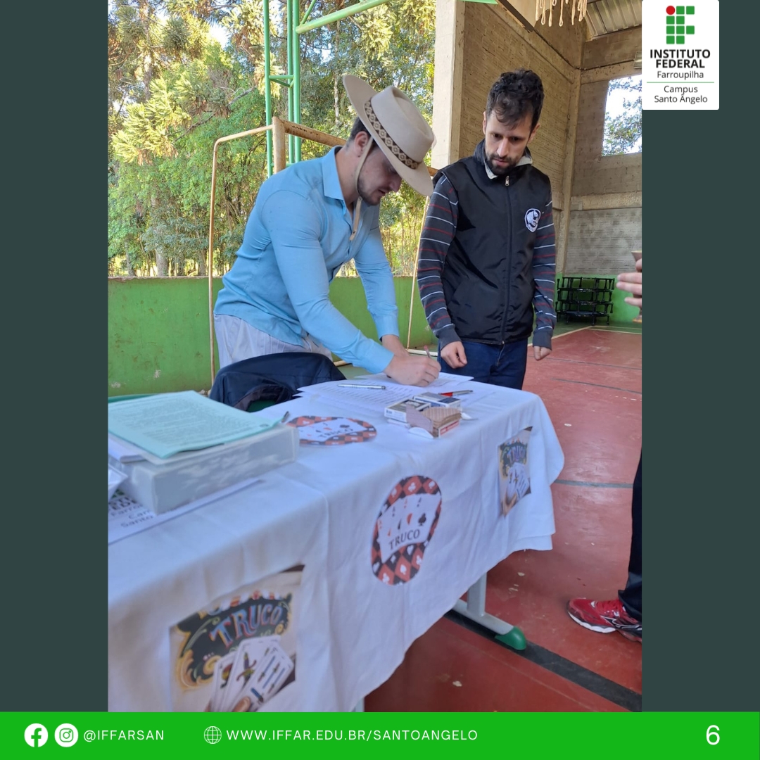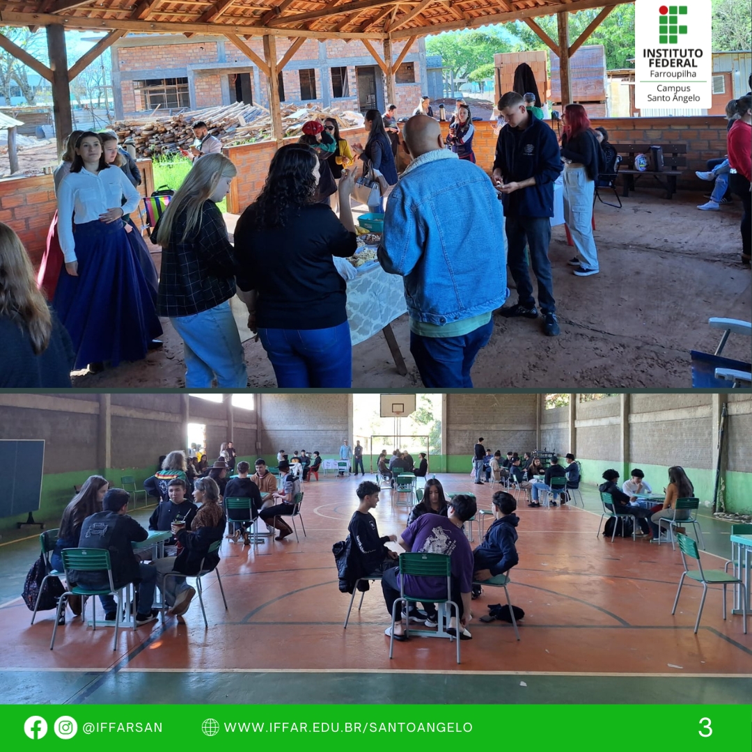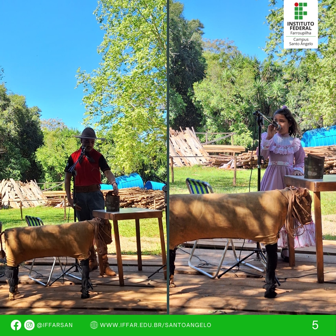 No dia 16/09 o IFFar Campus Santo Ângelo realizou evento alusivo a Semana Farroupilha. Estavam presentes, servidores, estudantes e familiares. Teve café colonial, torneio de truco, concurso de cuias, apresentações artísticas, brincadeira da vaca parada, e muita diversão. Foi uma manhã muito agradável, de integração, confraternização e alusão à tradição gaúcha.