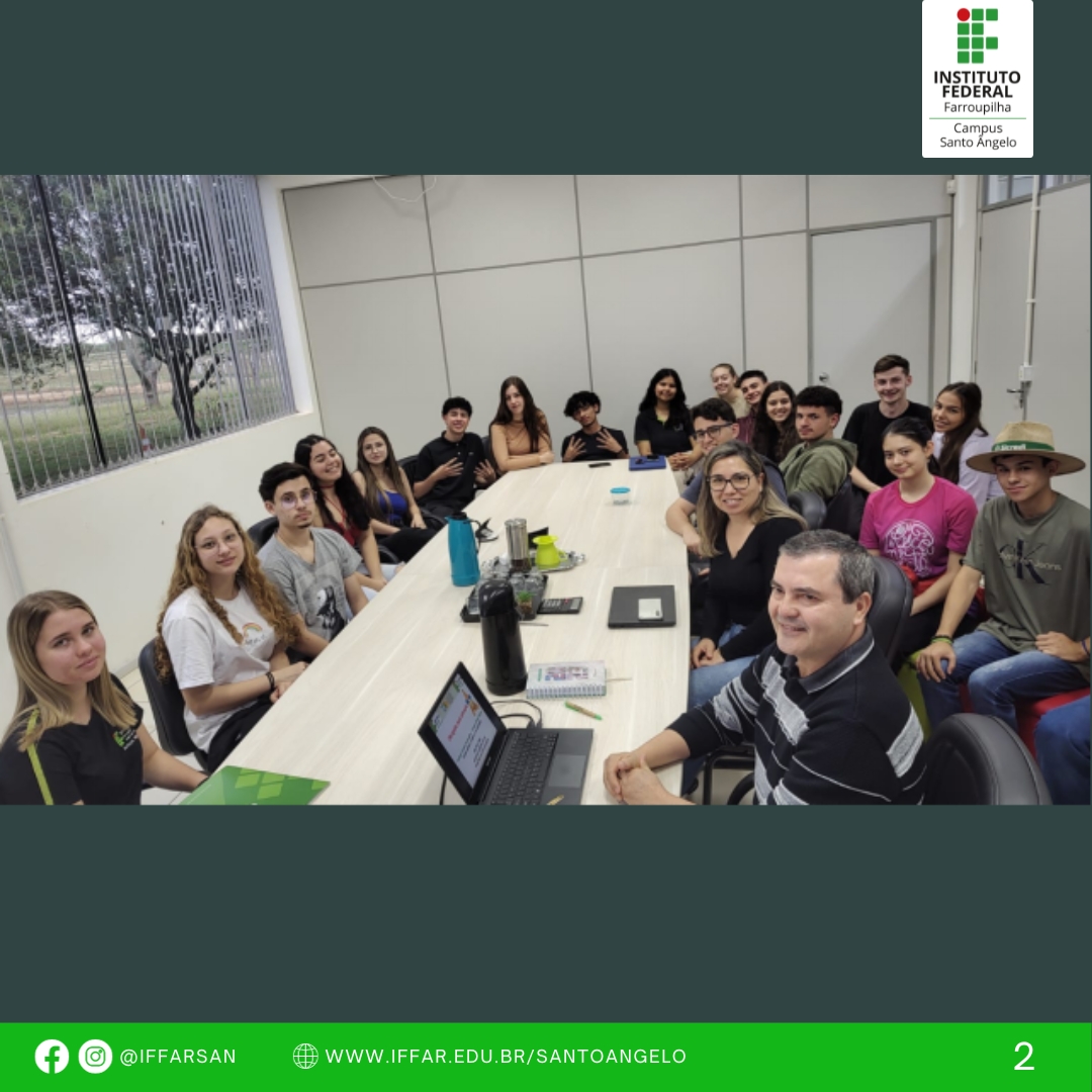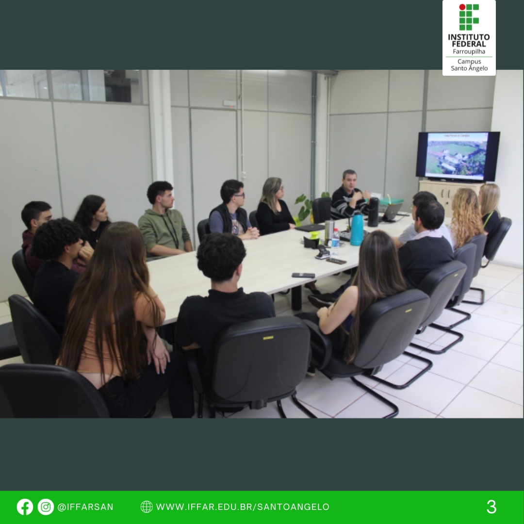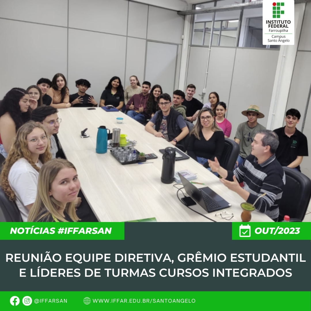 No final da manhã do dia 03 de outubro, a Equipe Diretiva reuniu-se com os integrantes da diretoria do Grêmio Estudantil e líderes de turmas dos Cursos Técnicos Integrados diurnos, onde foram abordados assuntos em devolutiva aos Conselhos Participativos realizados no primeiro semestre, bem como atualização e encaminhamentos de ações estruturantes de interesse da comunidade acadêmica do IFFar - Campus Santo Ângelo.