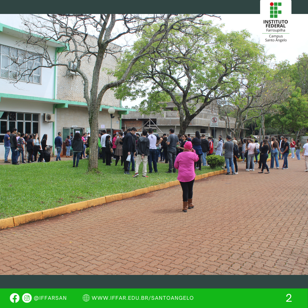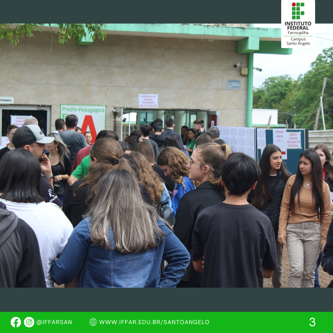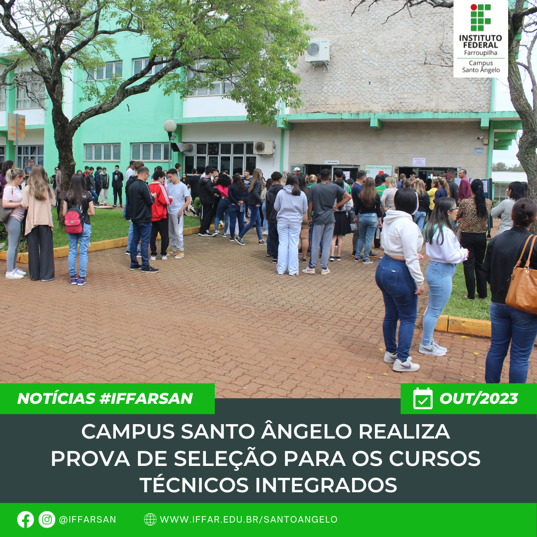 Na tarde de ontem (08/10), o IFFar Campus Santo Ângelo realizou a prova de seleção dos Cursos Técnicos Integrados ao Ensino Médio. Cerca de 350 candidatos compareceram ao Campus para concorrer às vagas dos cursos técnicos em Administração (70), Agricultura (35) e Informática (35). O processo seletivo envolveu a participação de 49 fiscais, distribuidos em 18 salas dos Blocos A, B e C, e transcorreu dentro da normalidade.