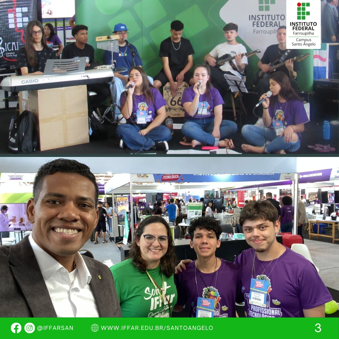 Entre os dias 16 e 20 de outubro o Campus Santo Ângelo foi representado por 2 projetos coordenados pela docente Karlise Soares, durante a 3ª Semana Nacional de Educação Profissional e Tecnológica que ocorreu em Brasília/DF, dentro da programação da 20ª Semana Nacional de Ciência e Tecnologia (SNCT), organizada pelo Ministério da Ciência, Tecnologia e Inovação (MCTI).