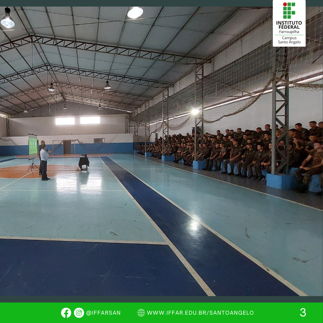O IFFar foi recebido pelo Comandante do 1º BCom Coronel Japhet e pelo o 1º Sargento Makewitz, sendo acompanhado até o Ginásio de Esportes onde foi realizada a apresentação do Campus aos soldados e cabos do batalhão, com explanação dos cursos de graduação ofertados com processo seletivo aberto: