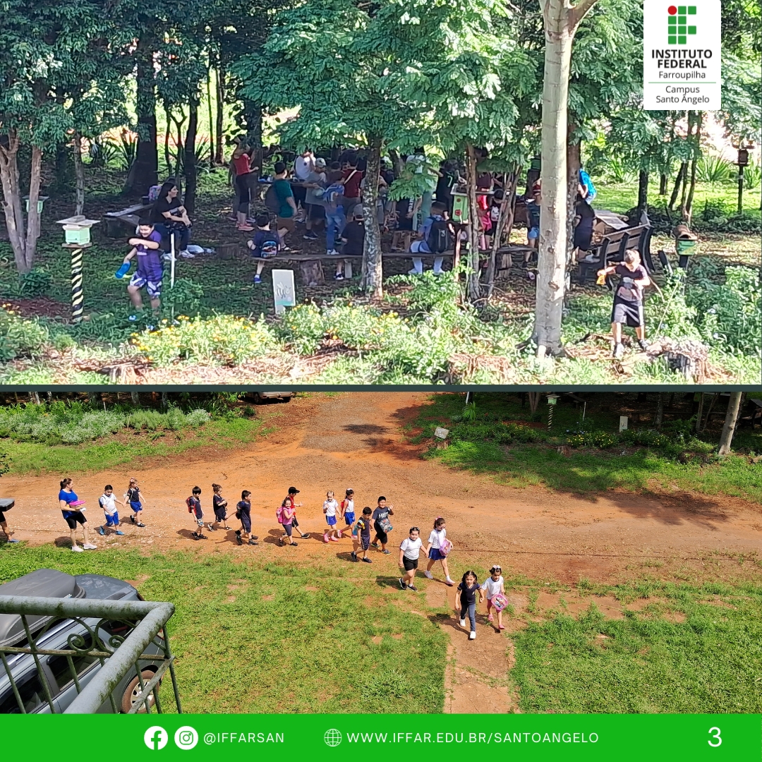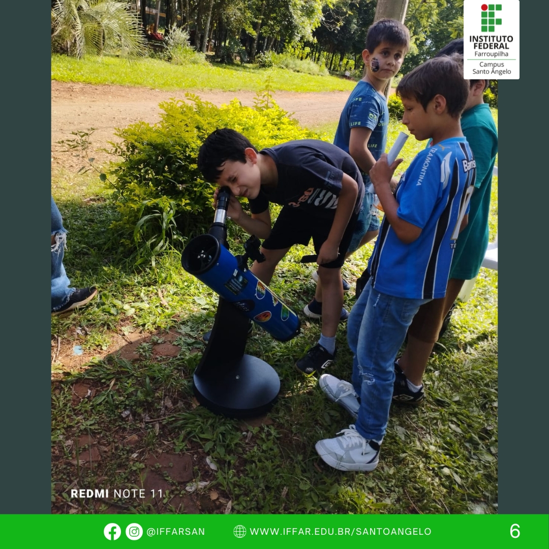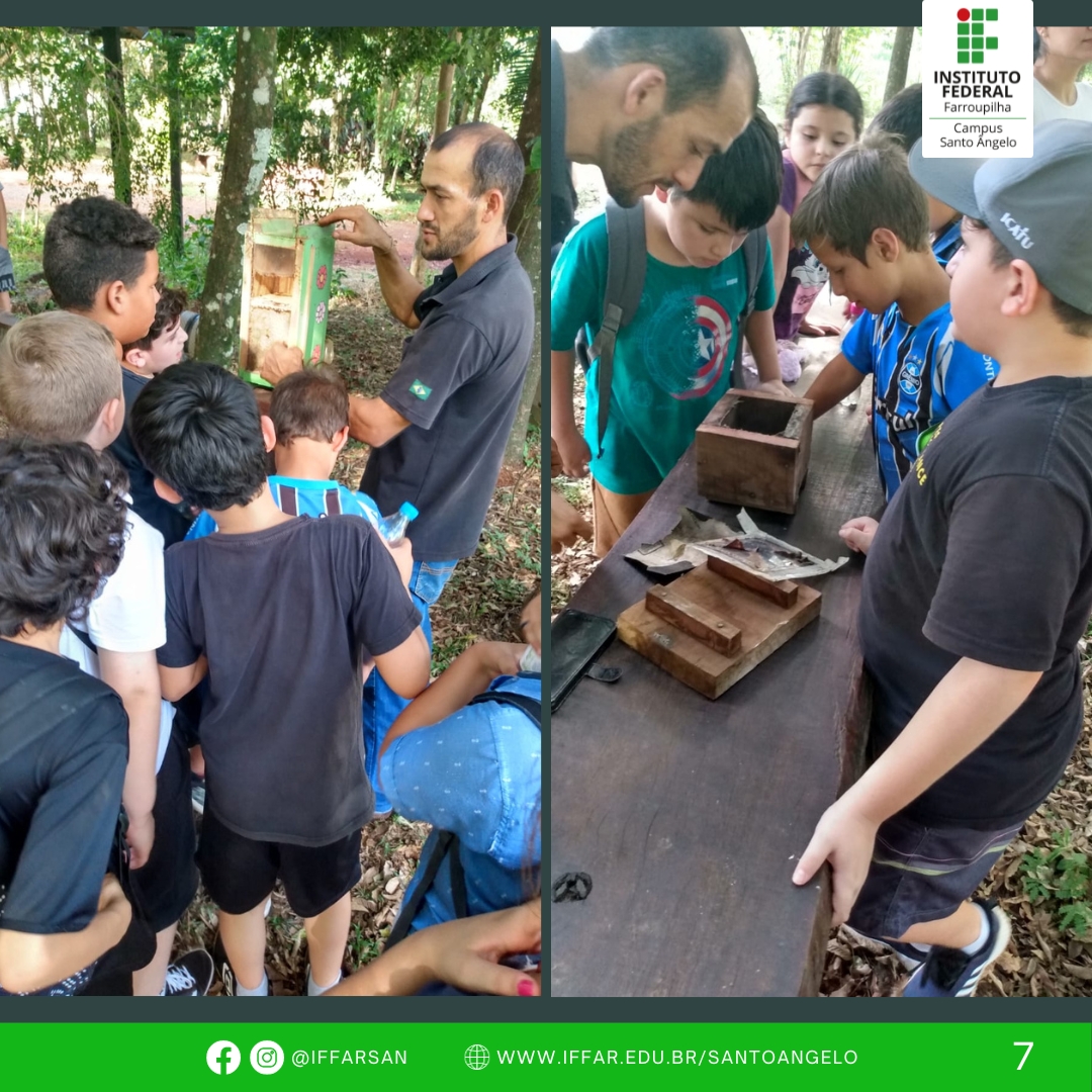 Por fim, os alunos puderam observar a lua no telescópio, fizeram piquenique e conheceram o Jardim do Mel, o meliponário do IFFar onde onde temos as abelhas sem ferrão “Jataí”, projeto coordenado pelo Técnico em Agropecuária Ivan J. Preuss, que falou sobre a importância do papel das abelhas para a natureza. O projeto também pode ser acompanhado no perfil @meliponario_iffarsan