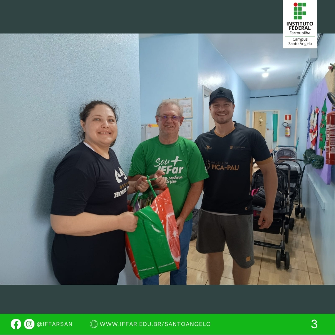 Os professores Ademir Wagner e Adelino Jacó Seibt entregaram nesta segunda-feira, dia 18 de dezembro de 2023, os livrinhos infantis arrecadados como prova no IF-GAMES à Creche do Bairro Indubras, à Escola Estadual Abílio Lautert e ao Lar da Menina São José.
