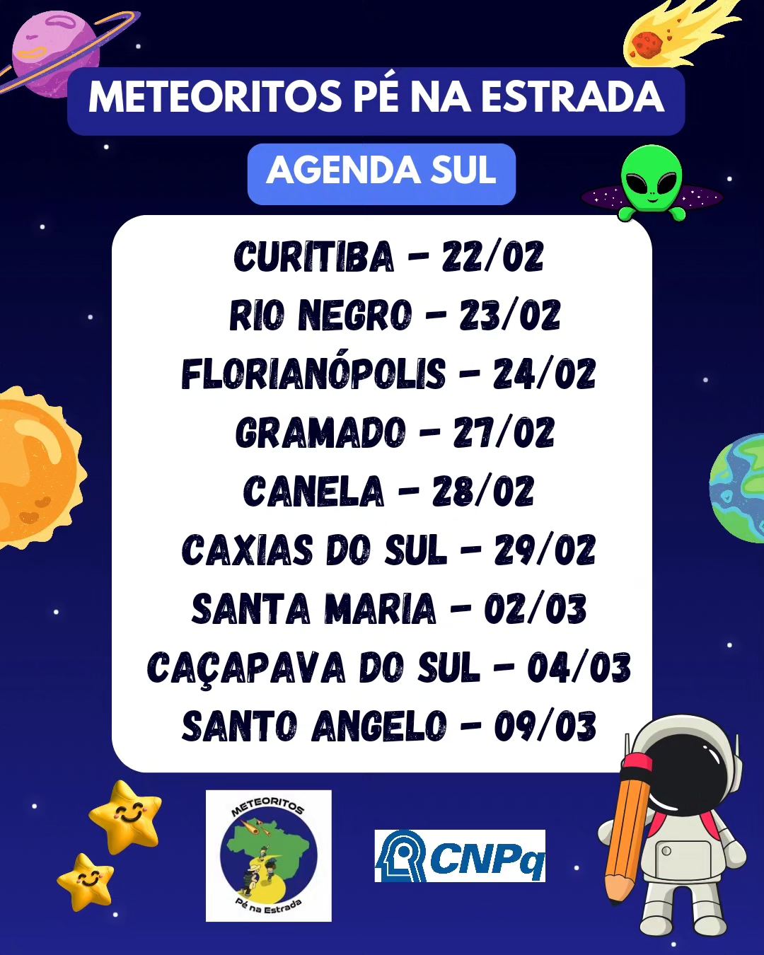 Bate-Papo com as Meteoríticas: Explore o mundo dos meteoritos em conversas descontraídas com as Meteoríticas, especialistas no tema. Descubra como caçar meteoritos e desvende os mistérios dessas rochas cósmicas que viajaram milhões de anos até chegarem à Terra. Conheça projeto apoiado pelo CNPq: https://www.instagram.com/meteoriticas.br/