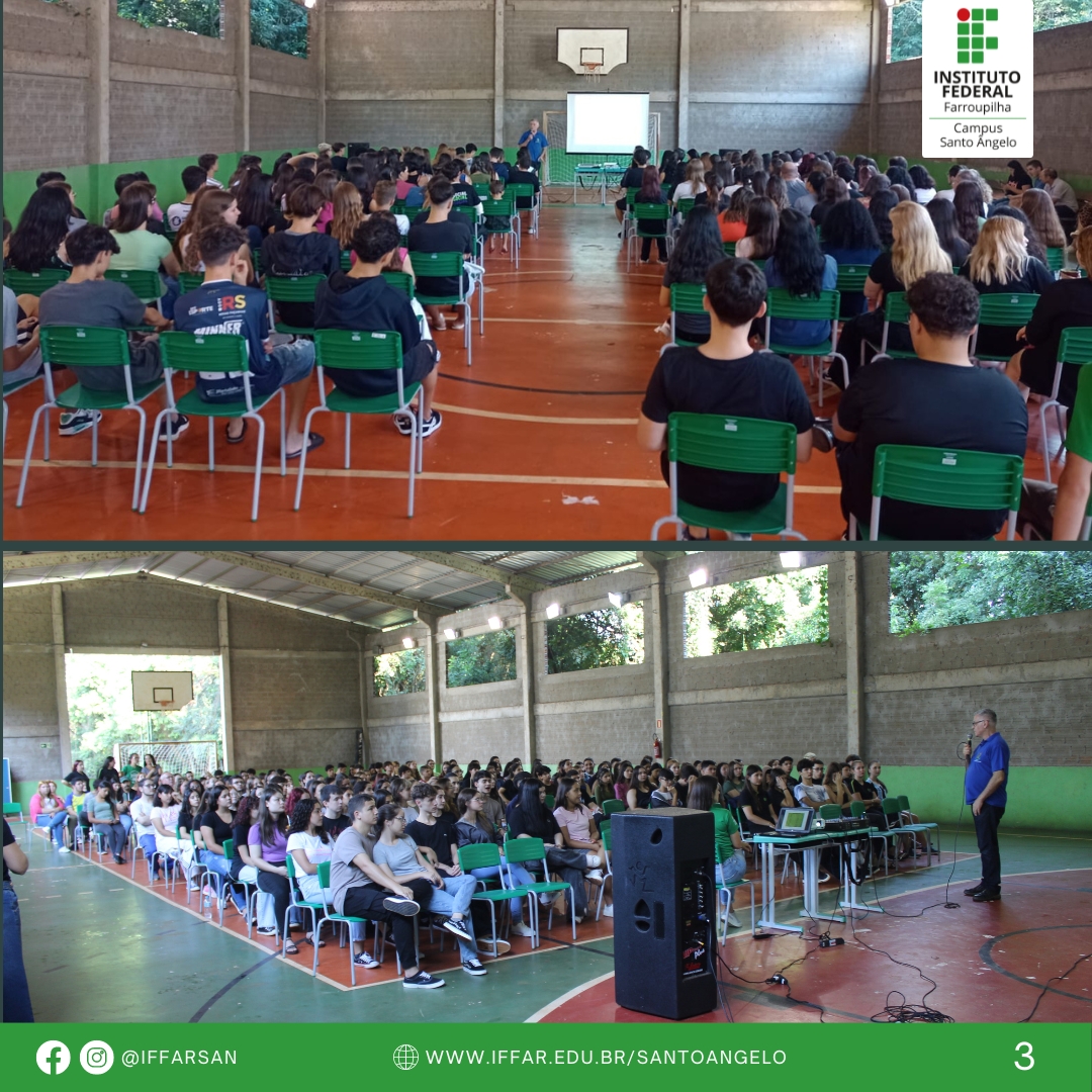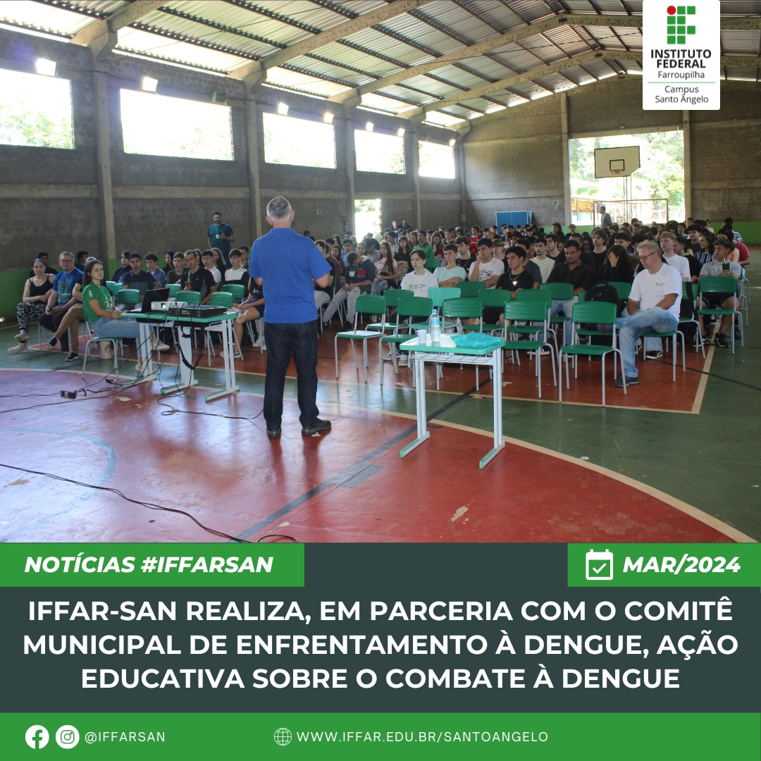 Na manhã de quarta-feira, dia 20 de março de 2024, o IFFar - Campus Santo Ângelo realizou, em parceria com o Comitê Municipal de Enfrentamento à Dengue, ação educativa sobre o combate à dengue.