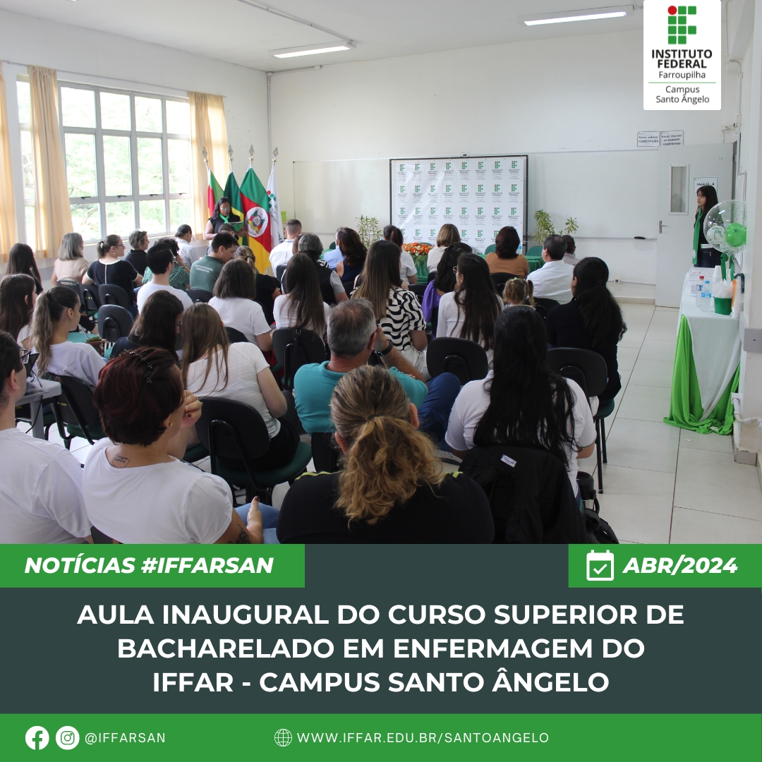 Com muito orgulho, na manhã do dia 04 de abril de 2024, o IFFar - Campus Santo Ângelo promoveu a solenidade para Aula Inaugural do Curso Superior de Bacharelado em Enfermagem.