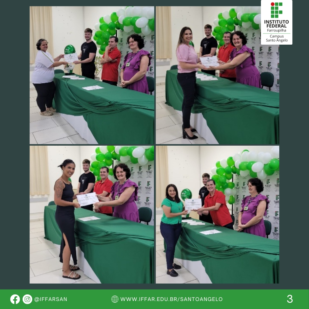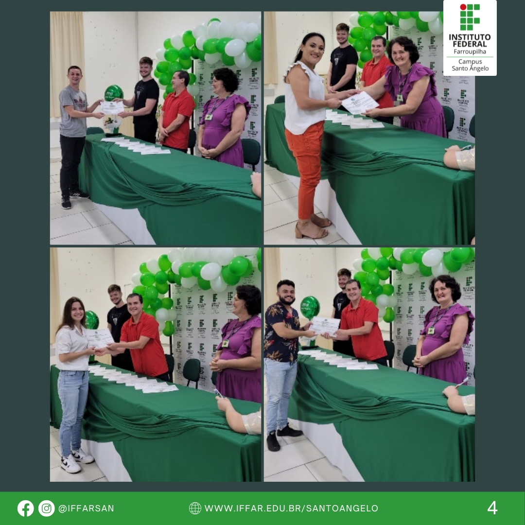 Durante a cerimônia de entrega o Sr Adilson Stamberg – Diretor Geral do IFFar – Campus Santo Ângelo fez um pronunciamento enaltecendo os cursos da saúde em nosso Campus e sua importância para a comunidade regional. Nessa perspectiva, a verticalização dos Cursos de Enfermagem, com a recente conquista do Bacharelado em Enfermagem neste Campus.
