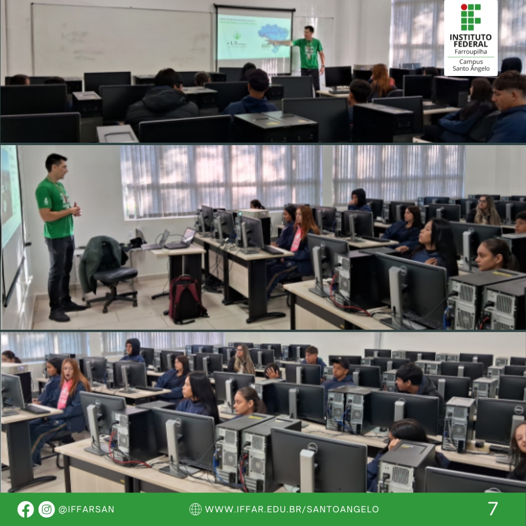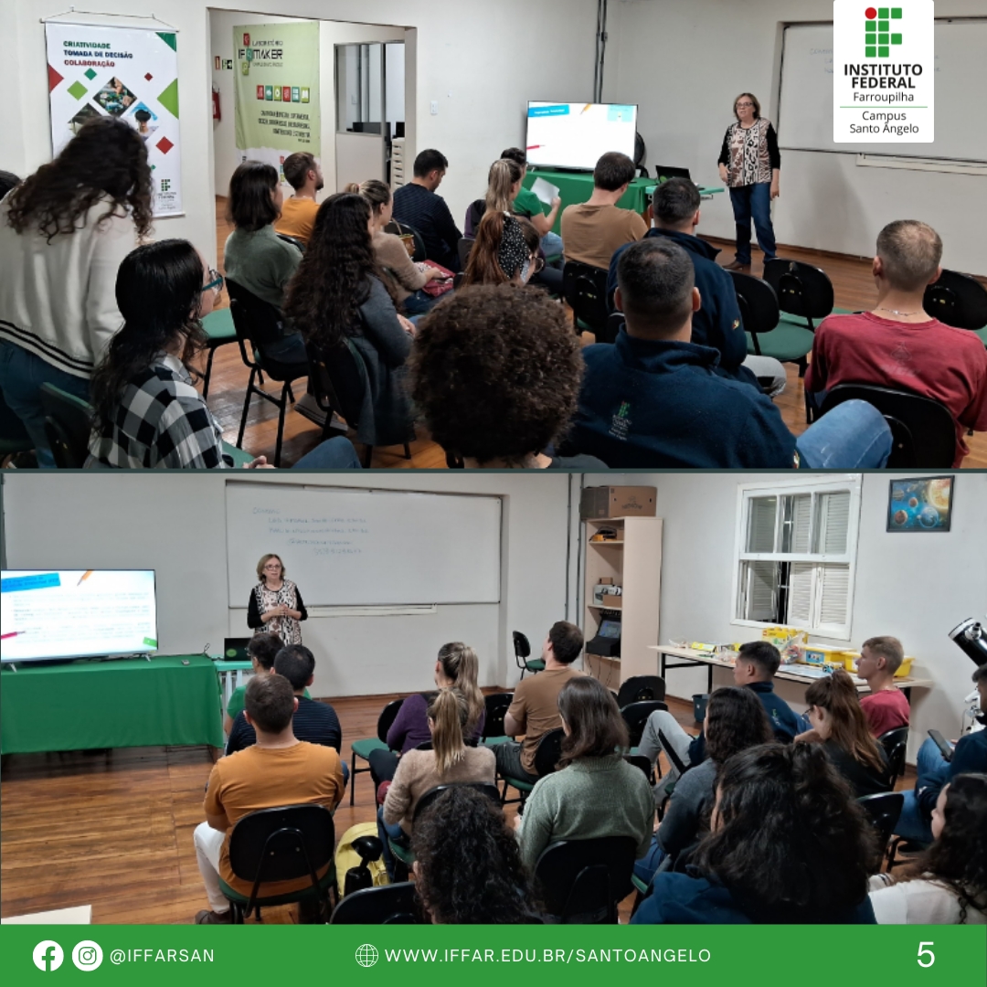 Entre os dias 16 e 18, o Laboratório IF Maker recebeu professores e gestores municipais, assim como alunos das escolas Liberato Salzano, Ulisses Rodrigues e José Alcebíades. Turmas do IFFar dos cursos Técnico em Informática (1º ano), Tecnólogo em Gestão do Agronegócio (3º e 5º semestres) e Bacharelado em Enfermagem (1º semestre) também visitaram o espaço. Ao todo, foram cerca de 140 pessoas participantes das atividades.