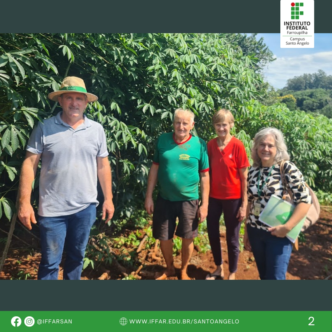 No dia 17 de abril, foi realizado um dia de campo sobre mandioca, na propriedade de Alberto Both e Rosa Hartmann Both, na localidade de Linha Passo Novo/Caibaté. A propriedade rural tem menos de 1 ha de terras, onde são cultivadas pelo casal diversas espécies de frutas e hortaliças. A mandioca é processada em uma agroindústria na propriedade, sendo comercializada em feiras e supermercados do município, e é a principal fonte de renda da família.