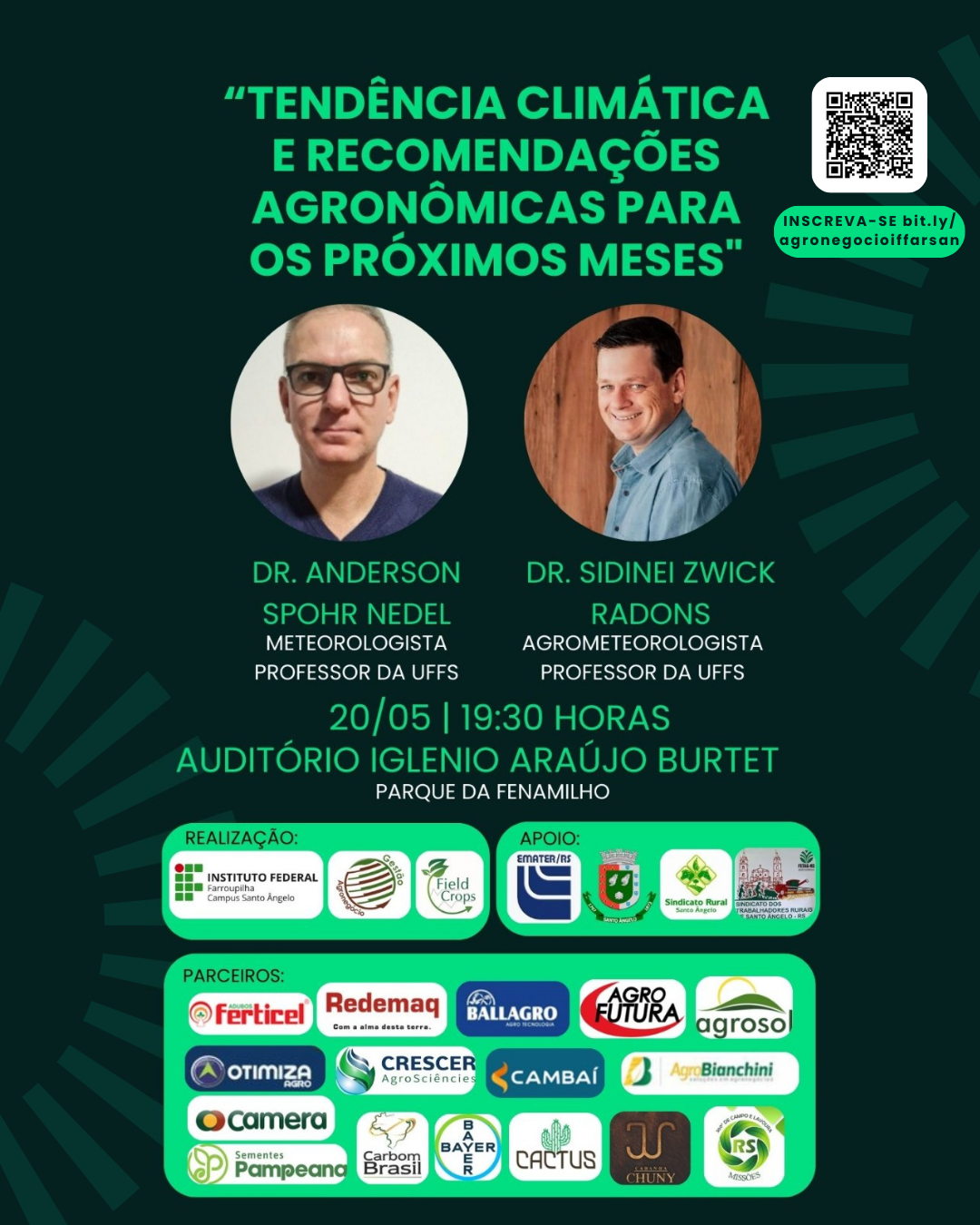 Palestrantes: Dr. Anderson Nedel (Meteorologista) e Dr. Sidinei Zwick Radons (Agrometeorologista), professores da UFFS.