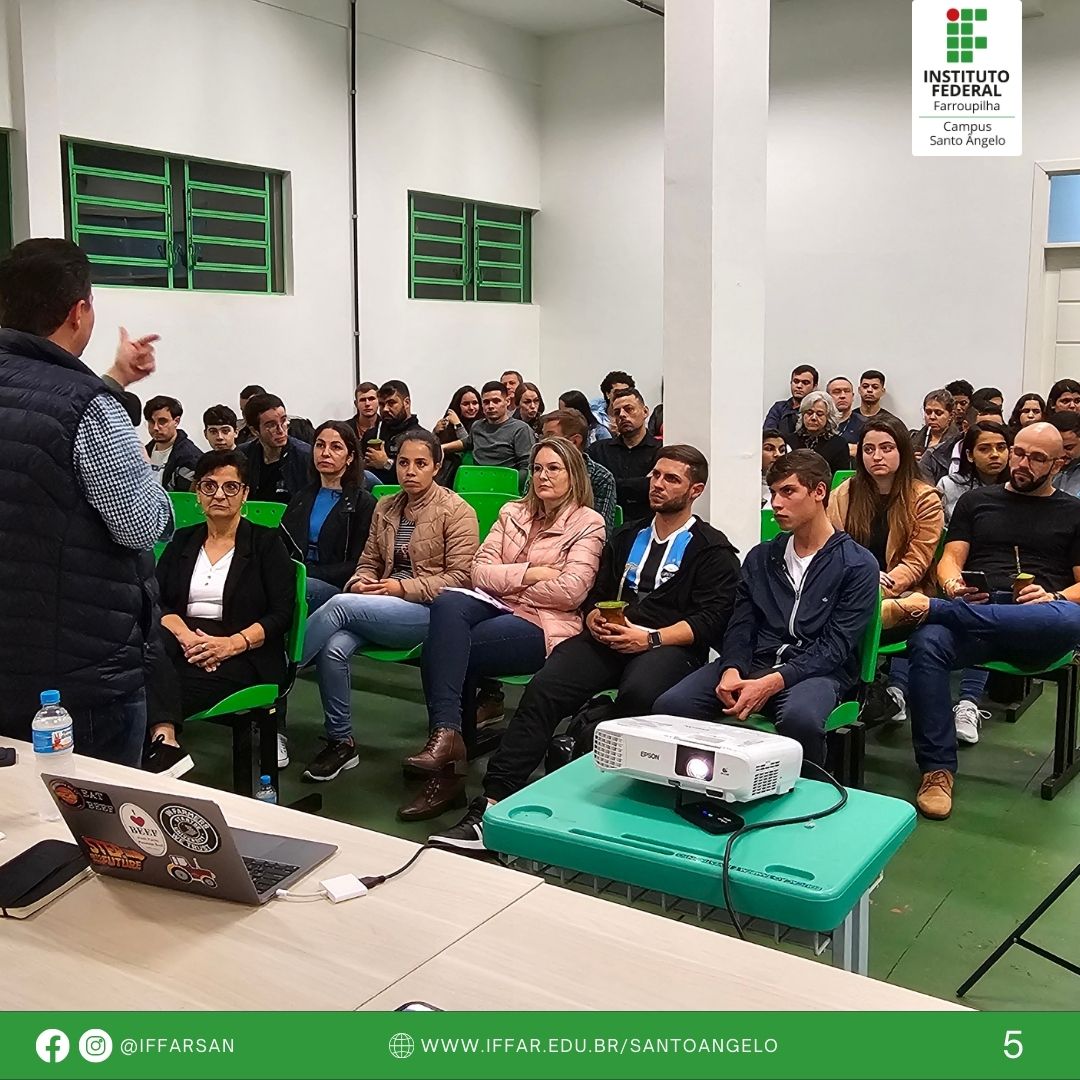 Dando continuidade à programação da XIX Semana Acadêmica do Curso Superior de Tecnologia em Gestão do Agronegócio, nesta última quinta-feira, dia 23 de maio, realizou-se nas dependências do IFFar - Campus Santo Ângelo a palestra com Júlio Bravo, com o tema "Empreendedorismo no Agronegócio". O objetivo deste tema foi mostrar ao público a experiência de empreender no agronegócio.