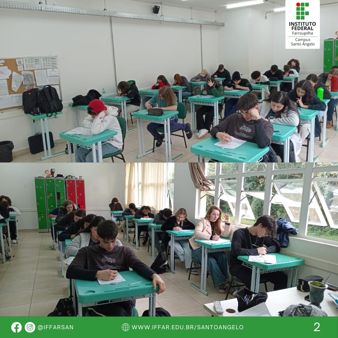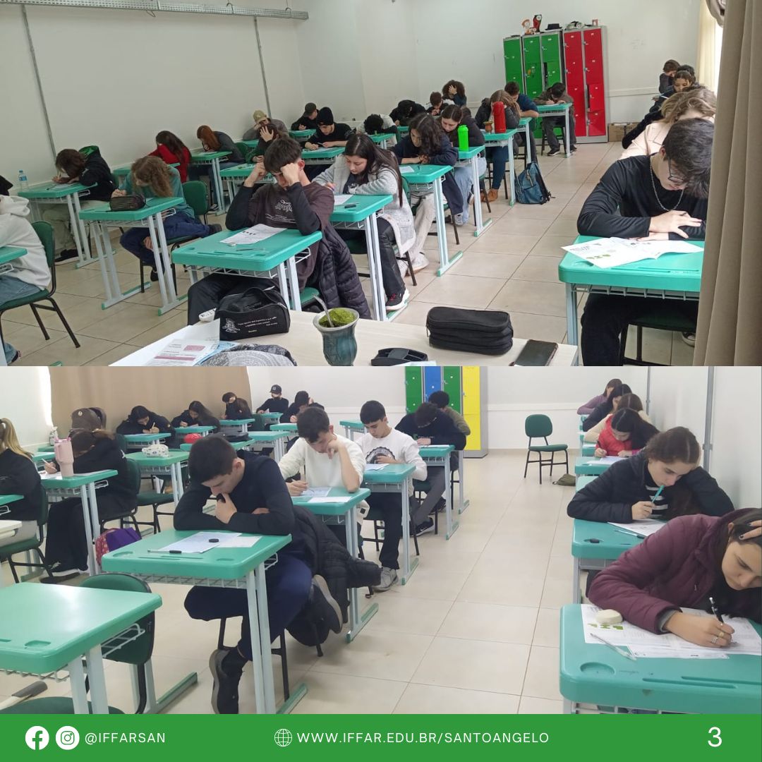 No dia 04 de junho de 2024 os alunos do IFFar - Campus Santo Ângelo participaram da 1º fase da Olimpíada Brasileira de Matemática das Escolas Públicas (OBMEP). A partir dessa prova foram selecionados 19 alunos que representarão a instituição na 2ª fase, que acontecerá no dia 04 de outubro de 2024.