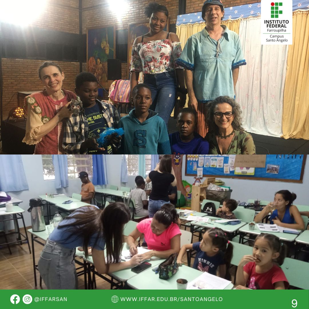 Na noite de sábado, 15, assistiram ao espetáculo teatral Aventuras de Fortúnio, do grupo de Teatro A Turma do Dionísio. Na noite de ontem, dia 20, alunos do projeto participaram de duas atividades no campus. A Oficina de Canva foi ministrada pelo acadêmico Lucas Luciano Maciel do curso de Licenciatura em Computação. Além desta oficina, duas alunas do projeto atuaram como modelos em aula prática de maquiagem para peles negras, na disciplina de Visagismo, ministrada pela Professora Maiara Krebs Segatto, do Curso Superior de Tecnologia em Estética e Cosmética.