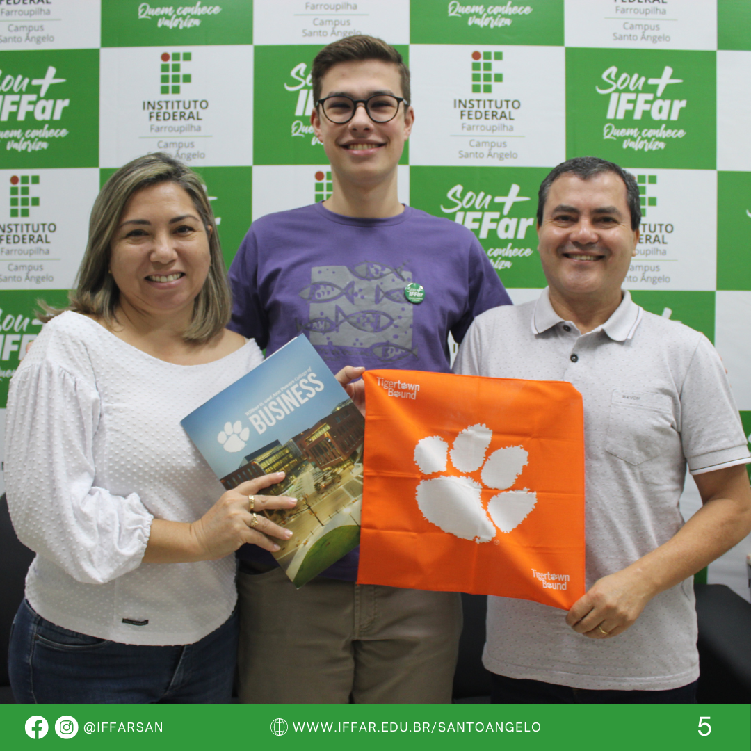 José Frederico Lucca, egresso do Curso Técnico em Manutenção e Suporte em Informática Integrado do IFFar - Campus Santo Ângelo (IFFar-SAN), conquistou a bolsa integral: National Scholars Program da Clemson University, localizada na Carolina do Sul, nos Estados Unidos (EUA).