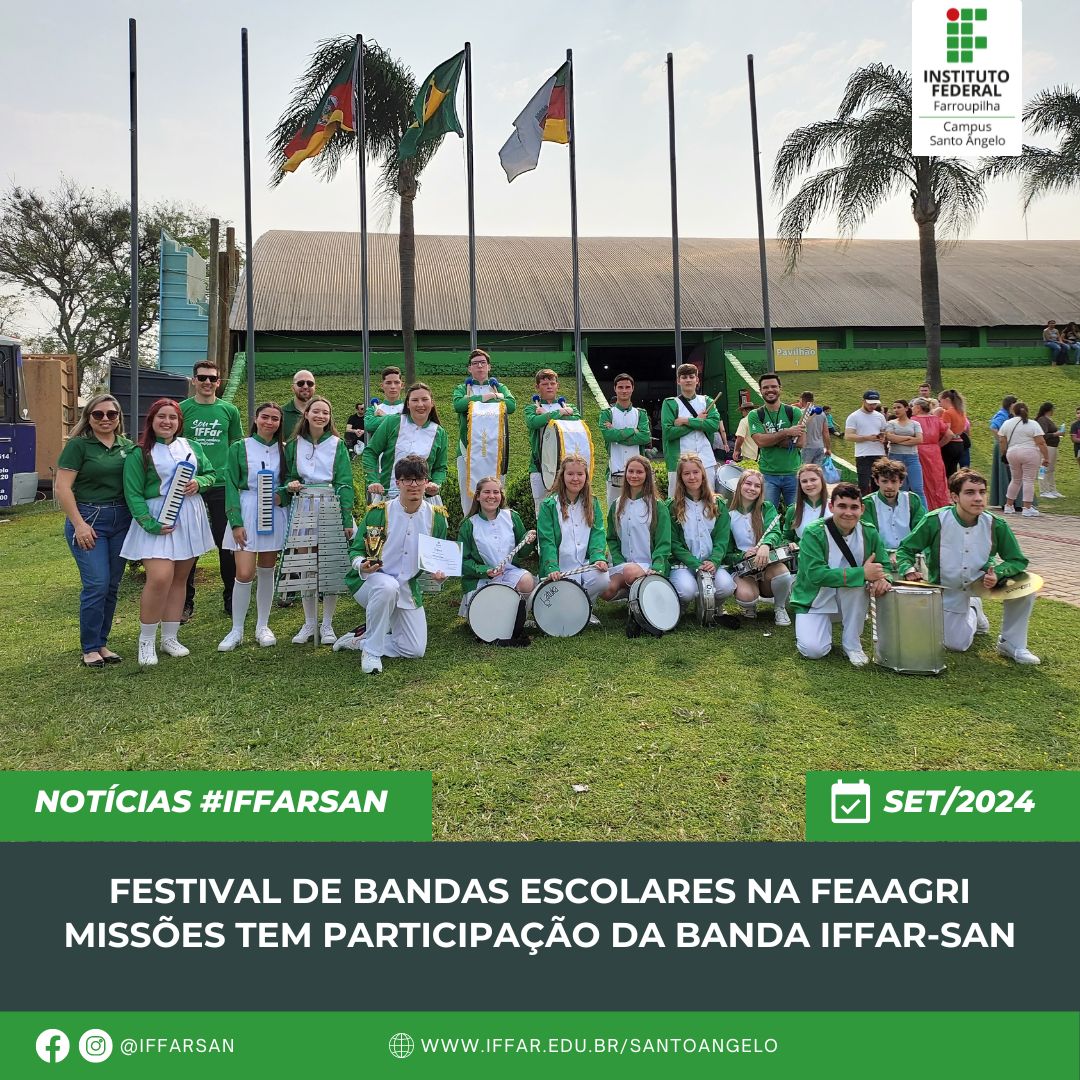 Durante a programação da 11ª FEAAGRI-Missões, Feira da Agroindústria e Agricultura Familiar - Indústria - Comércio - Gastronomia e Cultura, no dia 08 de setembro foi realizado o Festival de Bandas Escolares, evento promovido pela 14ª Coordenadoria Regional de Educação (14ª CRE), que contou com a participação da Banda Escolar IFFar-SAN junto ao Parque Internacional Siegfried Ritter, em Santo Ângelo.