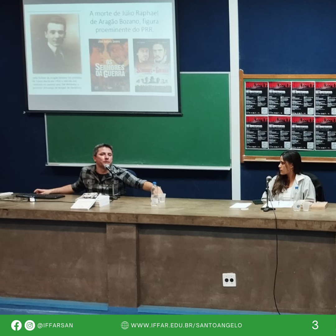 Em sua palestra o professor falou sobre o movimento tenentista e a formação da Coluna Prestes no Rio Grande do Sul, movimentos que em 2024 completam 100 anos e tiveram desdobramentos importantes na região das Missões, os quais fizeram parte de suas pesquisas de mestrado e doutorado, além de ter uma obra publicada sobre o assunto.