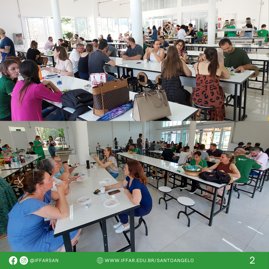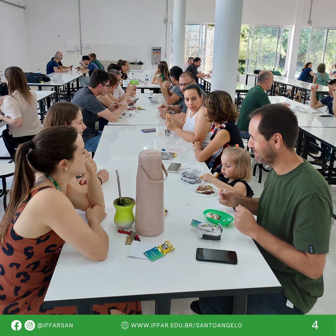 Após uma reunião geral no auditório, os servidores Técnicos Administrativos em Educação e Docentes se reuniram no Centro de Convivência para confraternizar com um lanche.