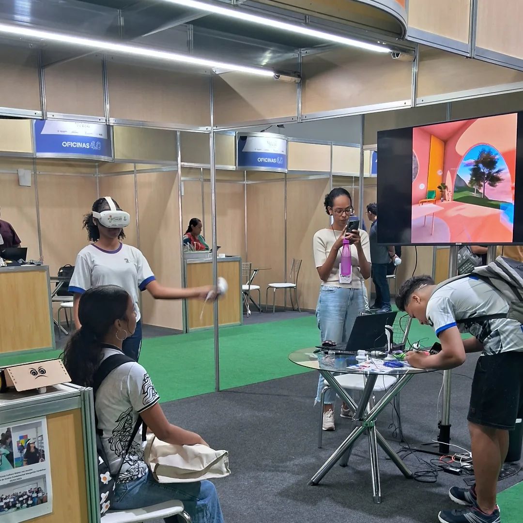 Servidora e estudantes do Laboratório IF-Maker do IFFar-SAN participam do evento EducaMundo 4.0, em Vitória-ES apresentando os projetos desenvolvidos na instituição