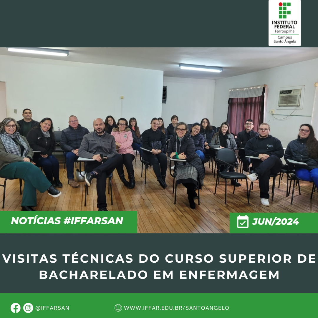 No dia 03 de junho de 2024, os acadêmicos do Curso Superior de Bacharelado em Enfermagem do IFFar - Campus Santo Ângelo realizaram visita à 12ª Coordenadoria Regional de Saúde (CRS) situada no município de Santo Ângelo/RS, onde puderam conhecer mais sobre sua atuação e importância do Sistema Único de Saúde (SUS).