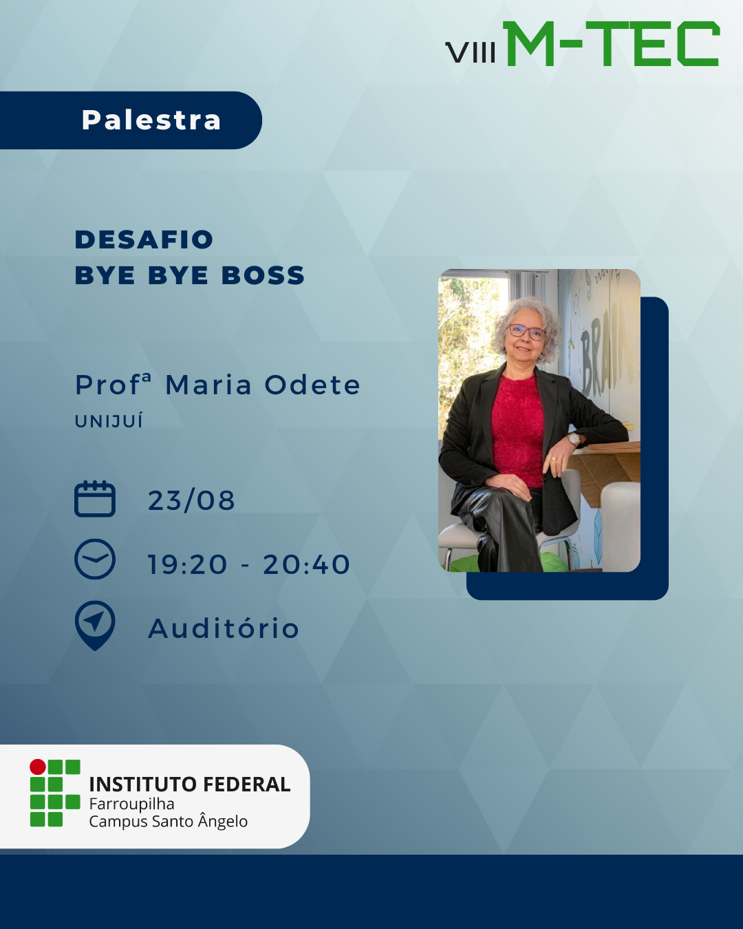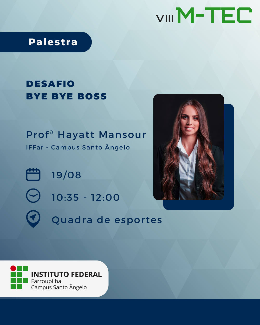 Durante a VIII M-TEC, foram realizadas palestras referentes ao Desafio Bye Bye Boss.
