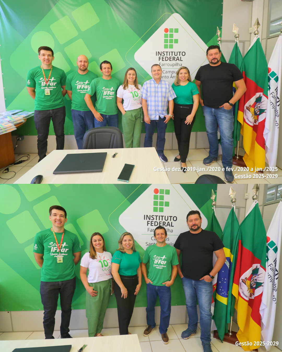 No dia 05 de fevereiro de 2025 ocorreu a reunião de transição da gestão do Instituto Federal Farroupilha - Campus Santo Ângelo. Na ocasião o Professor Adilson R. P. Stamberg - Diretor Geral na gestão de dez./2019 a jan./2020 e fev./2020 a 03 de fev./2025 compartilhou um balanço sobre as principais ações desenvolvidas ao longo deste período à nova equipe diretiva, sob a gestão da Professora Mariéli T. Krampe Machado - Diretora Geral eleita para a gestão 2025-2029. A nova gestão teve início oficialmente no dia 03 de fevereiro de 2025, conforme publicação no Diário Oficial. Este momento representa a continuidade do trabalho em prol da educação pública, gratuita e de qualidade, reafirmando nosso compromisso com o ensino, a pesquisa e a extensão.