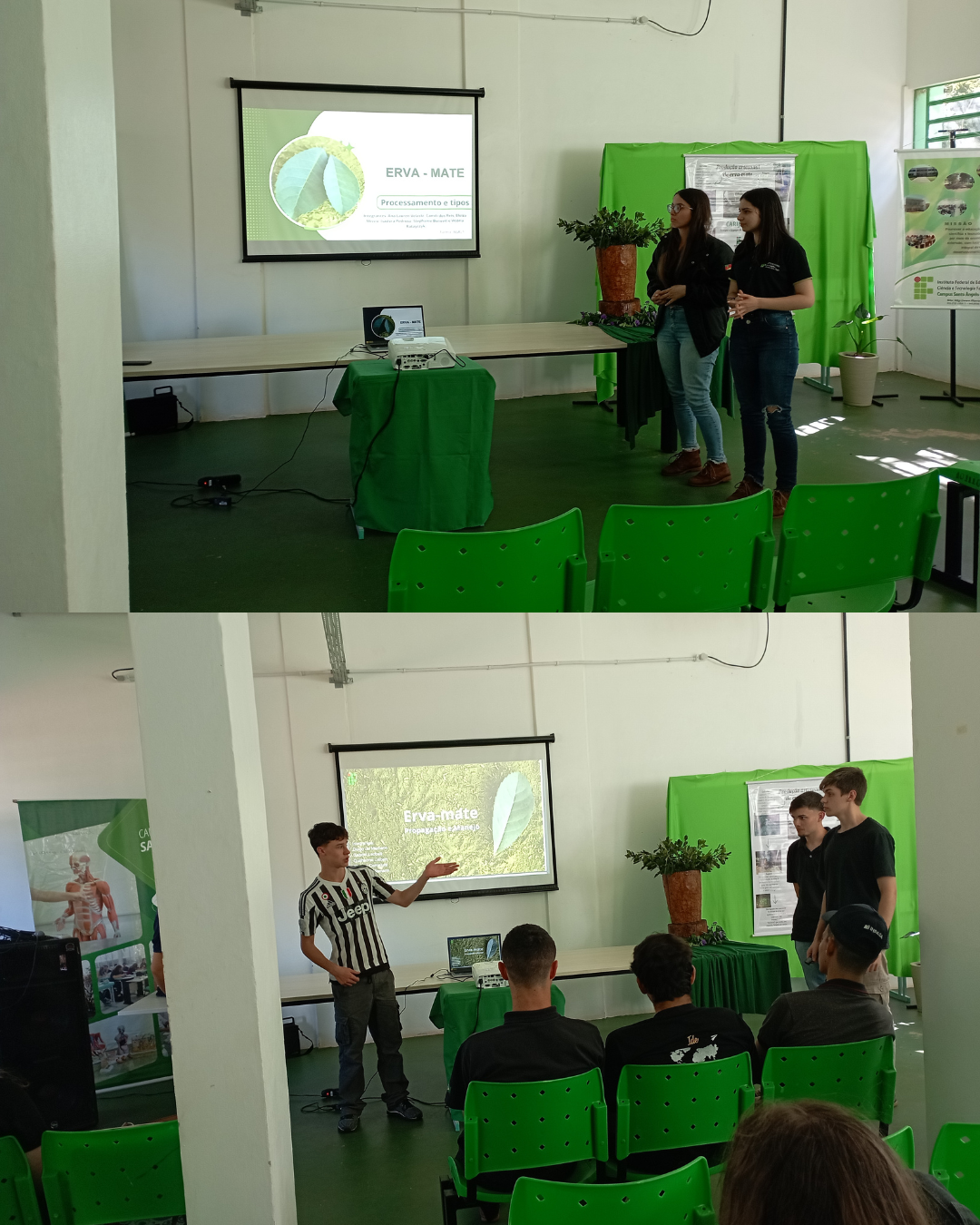 O processo de produção de erva-mate se estendeu ao longo dos dois dias, envolvendo alunos do campus e visitantes, desde a colheita da planta, o sapeco, a formação dos macacos, a secagem no carijo, o cancheamento e, por fim, a pilagem da erva e o sorver do chimarrão com a erva-mate produzida. Esses momentos são vivenciados com muita alegria por parte dos alunos, em especial dos cursos técnicos integrados.