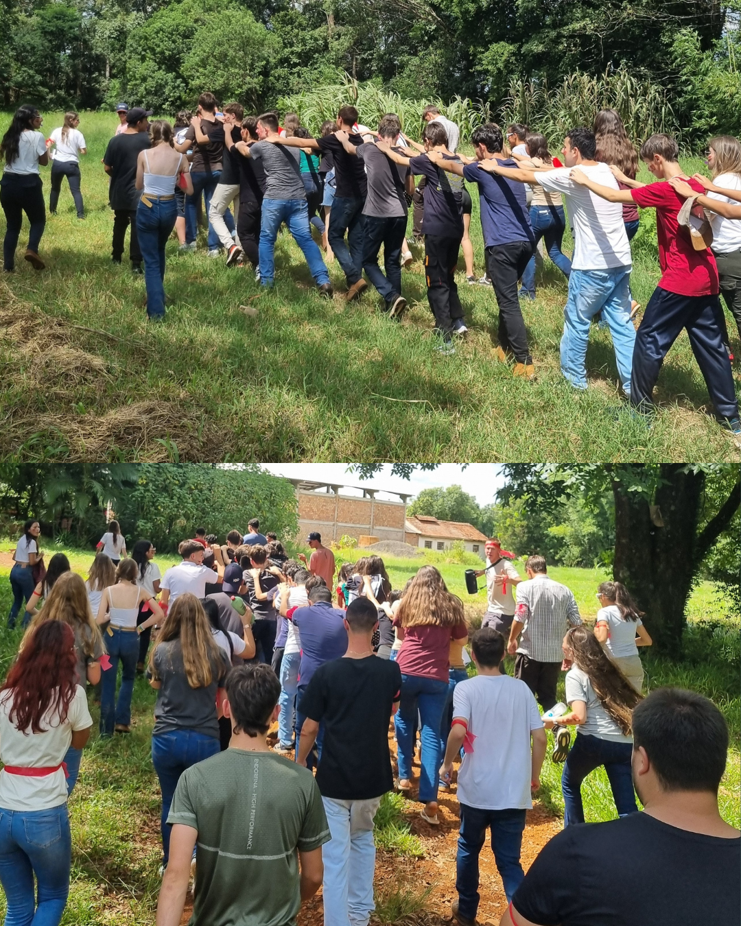 O Instituto Federal Farroupilha – Campus Santo Ângelo iniciou o ano letivo com um acolhimento especial para os calouros das turmas integradas, promovido pelas turmas veteranas. Esse momento foi marcado por atividades dinâmicas e interativas, que buscaram fortalecer os laços entre os estudantes e introduzir os novos alunos à cultura institucional. Brincadeiras, danças, caminhadas pelo campus, quizzes e dinâmicas de integração foram algumas das ações realizadas, proporcionando um ambiente acolhedor e colaborativo. A iniciativa reforça o compromisso do IFFar em oferecer uma educação de qualidade aliada ao desenvolvimento social e pessoal dos seus estudantes.