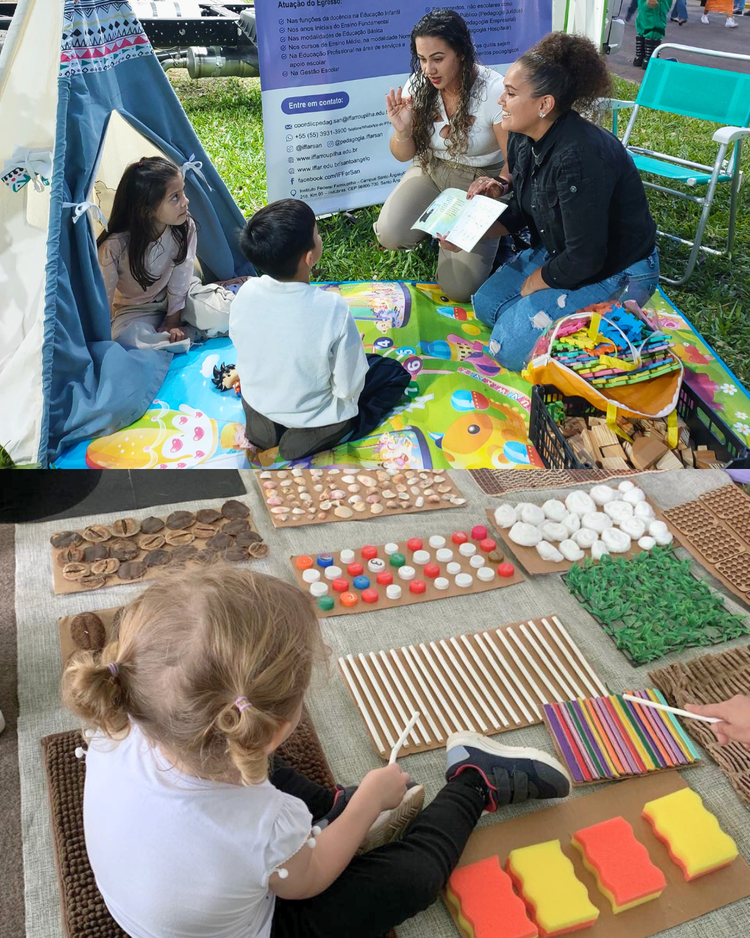 No espaço Campo Tech, o campus apresentou projetos com foco em pesquisa agrícola, práticas sustentáveis e inclusão sensorial: