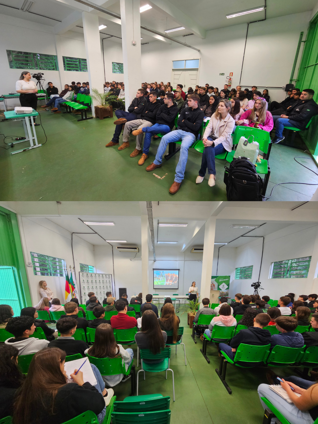Na manhã do dia 19 de maio de 2025, estudantes do 1º ano do Curso Técnico em Agropecuária Integrado ao Ensino Médio participaram da palestra “Leite: Mitos e Verdades”, ministrada pela Drª Daniela Buzatti Cassanego. A atividade ocorreu no IFFar – Campus Santo Ângelo e integrou a proposta pedagógica do curso, aproximando os conteúdos de sala de aula da realidade do setor produtivo.