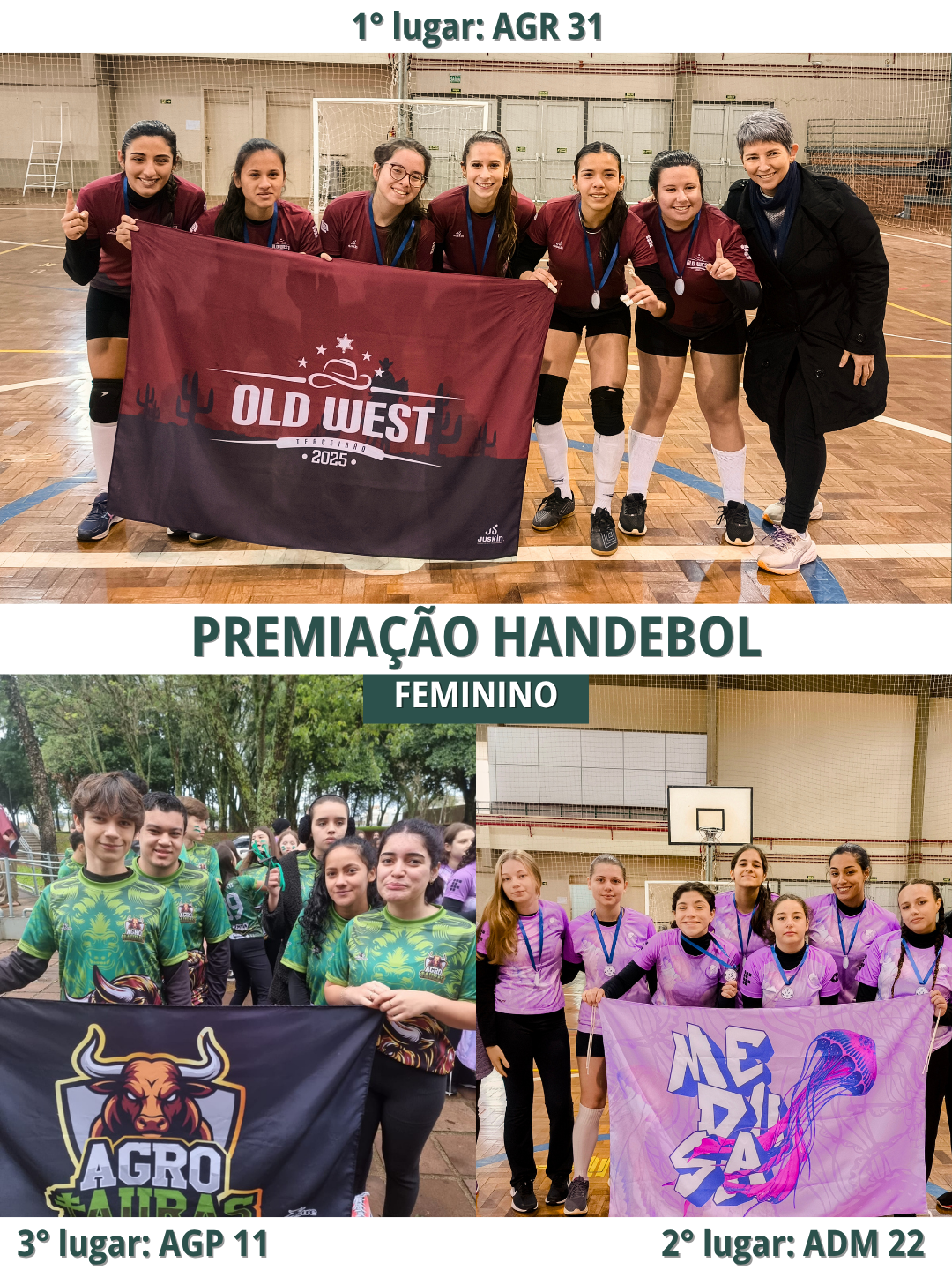 Feminino: 1º lugar – AGR 31 | 2º lugar – AGR 21 | 3º lugar – ADM 12