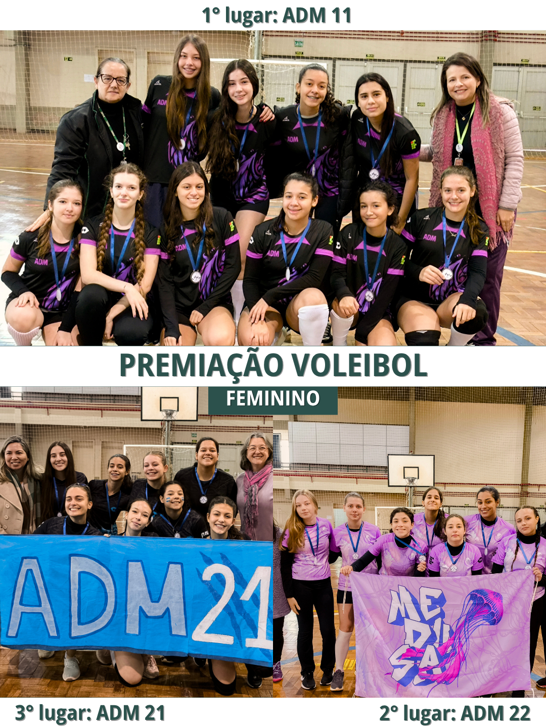 Feminino: 1º lugar – ADM 11 | 2º lugar – ADM 22 | 3º lugar – ADM 21