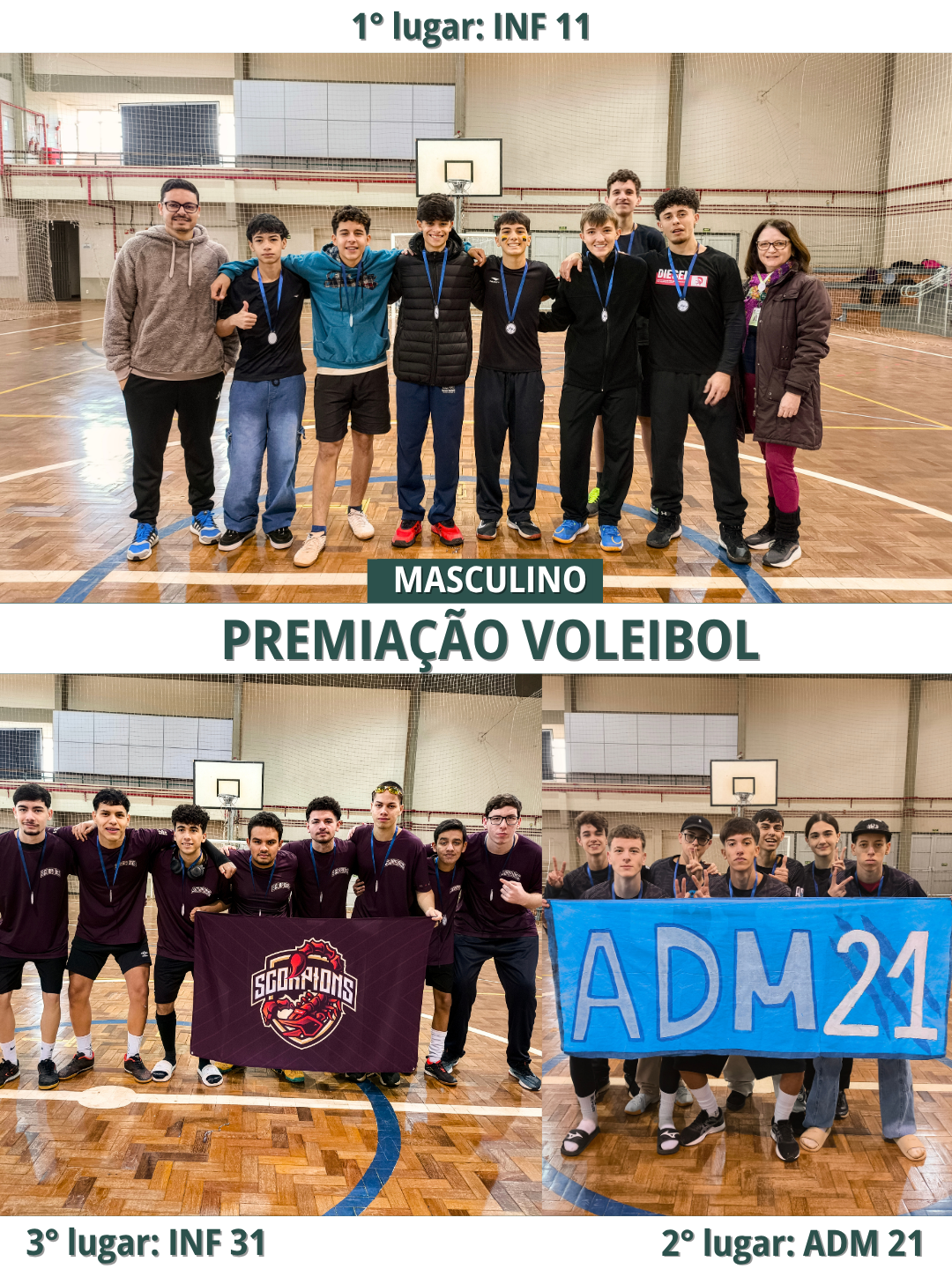 Masculino: 1º lugar – INF 11 | 2º lugar – ADM 21 | 3º lugar – INF 31