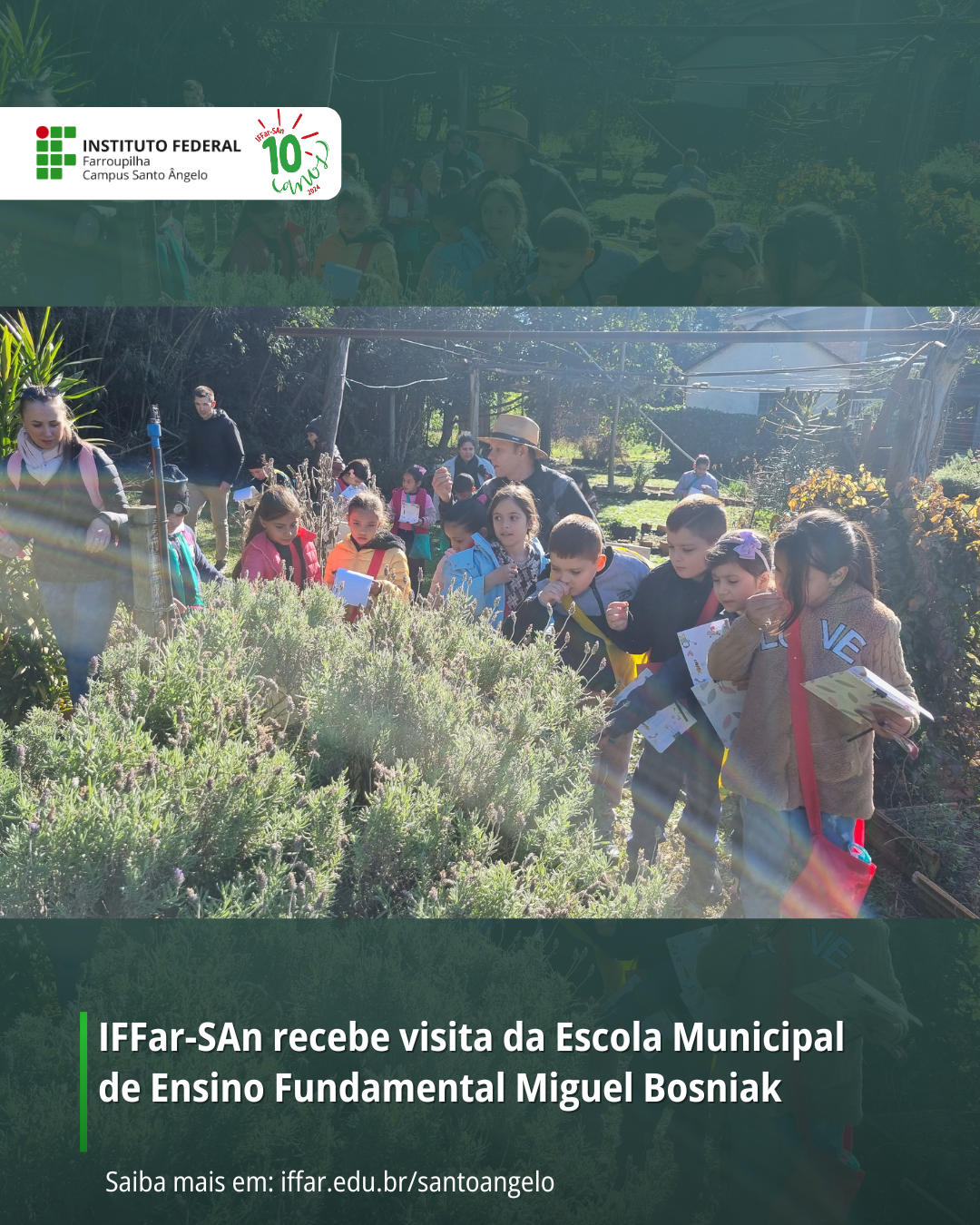 Na tarde da última quinta-feira (03/07), o IFFar – Campus Santo Ângelo recebeu com alegria a visita de cerca de 60 estudantes do 1º, 2º e 3º ano do Ensino Fundamental da Escola Municipal de Ensino Fundamental Miguel Bosniak, acompanhados por suas professoras.