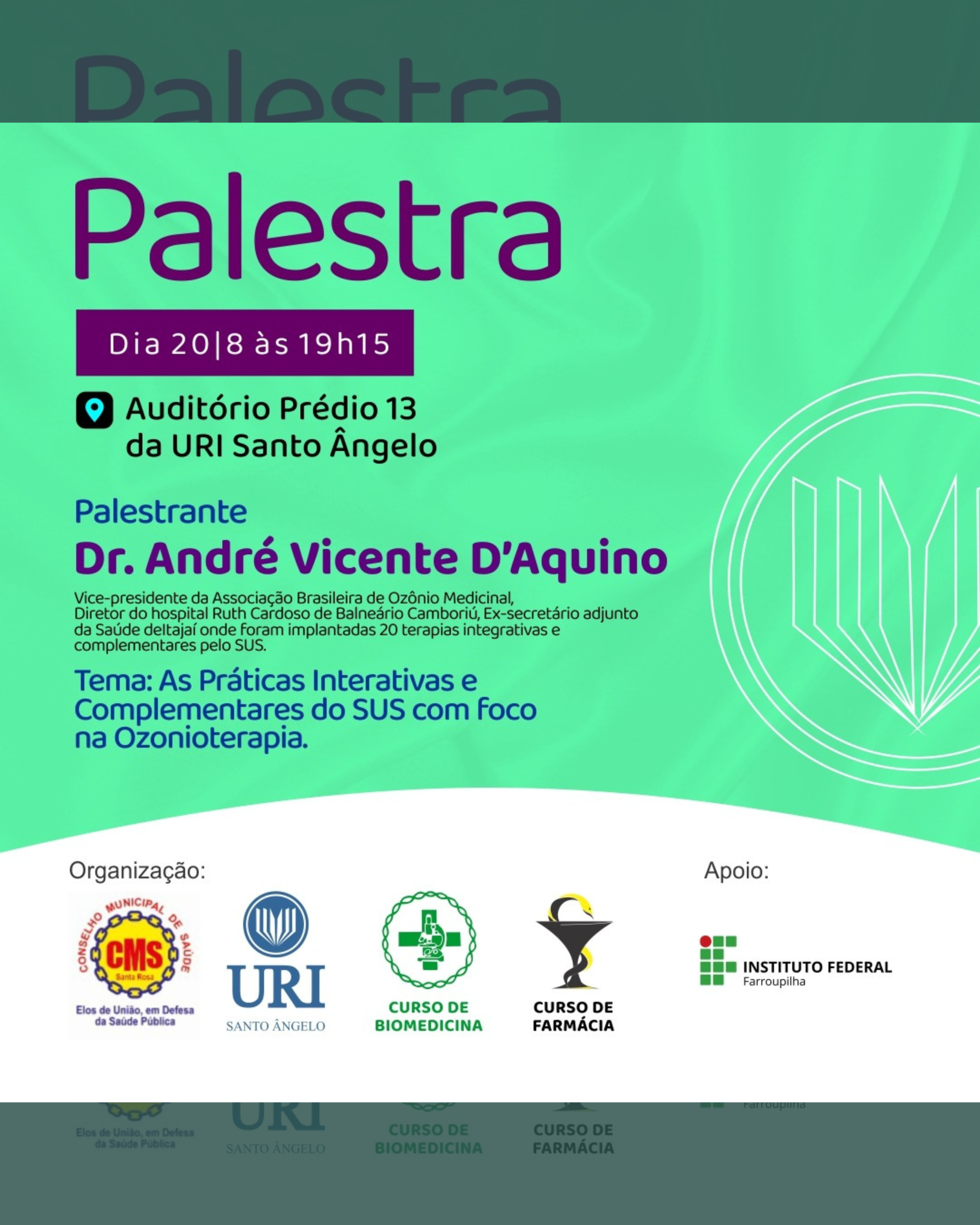 Página inicial > Santo Ângelo > Cursos do Eixo de Ambiente e Saúde do IFFar-SAn participam de palestra "As Práticas Interativas e Complementares do SUS com foco na Ozonioterapia" na URI - Santo Ângelo